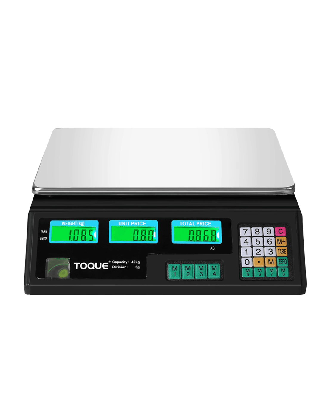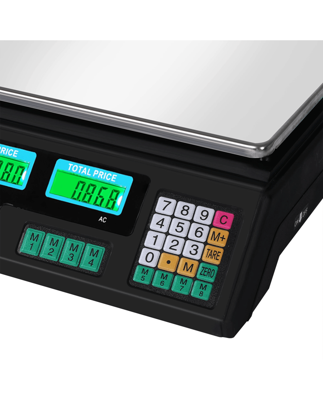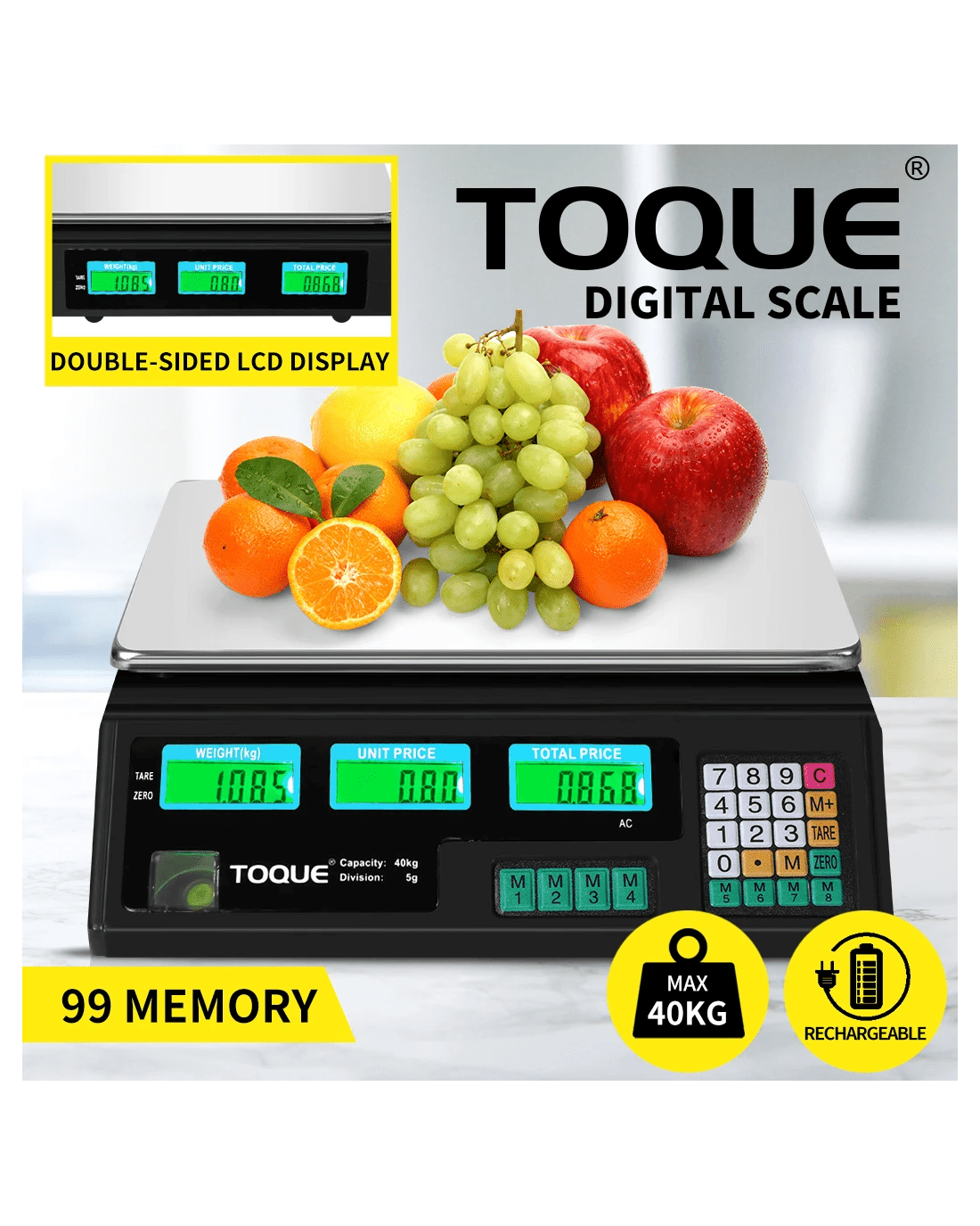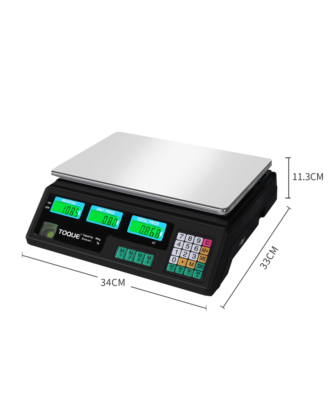 Equipped with a state-of-the-art comprehensive display. It displays weight, total price, low power, or AC power indicator. Ample memory storage, it accommodates 99 accumulation memory and 8-unit process storage. The digital display is designed with a double-sided backlit LED display, the user and customer can both make note of the digital readings. Comes equipped with a rechargeable battery with a standard AC plug. A long-lasting battery, on a full charge the battery can last up to 140 hours of continuous use. A high capacity battery ensures your work is not interrupted.