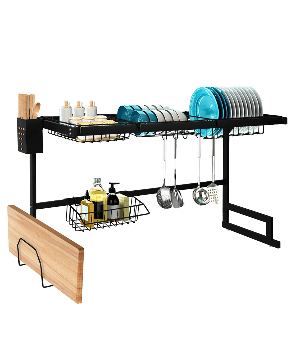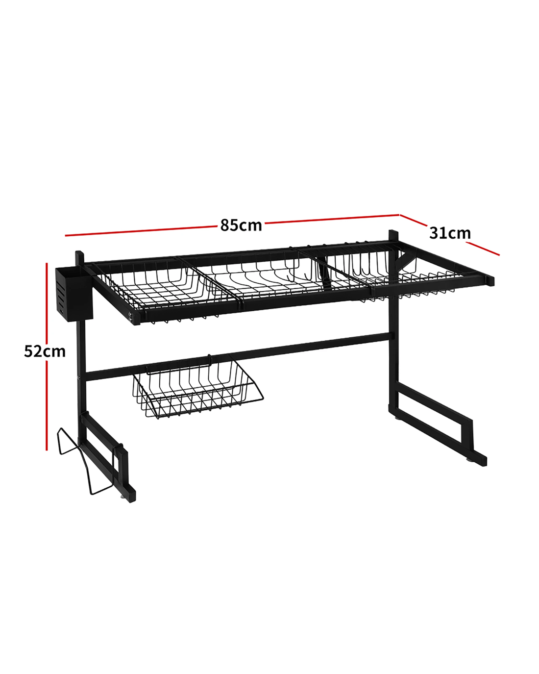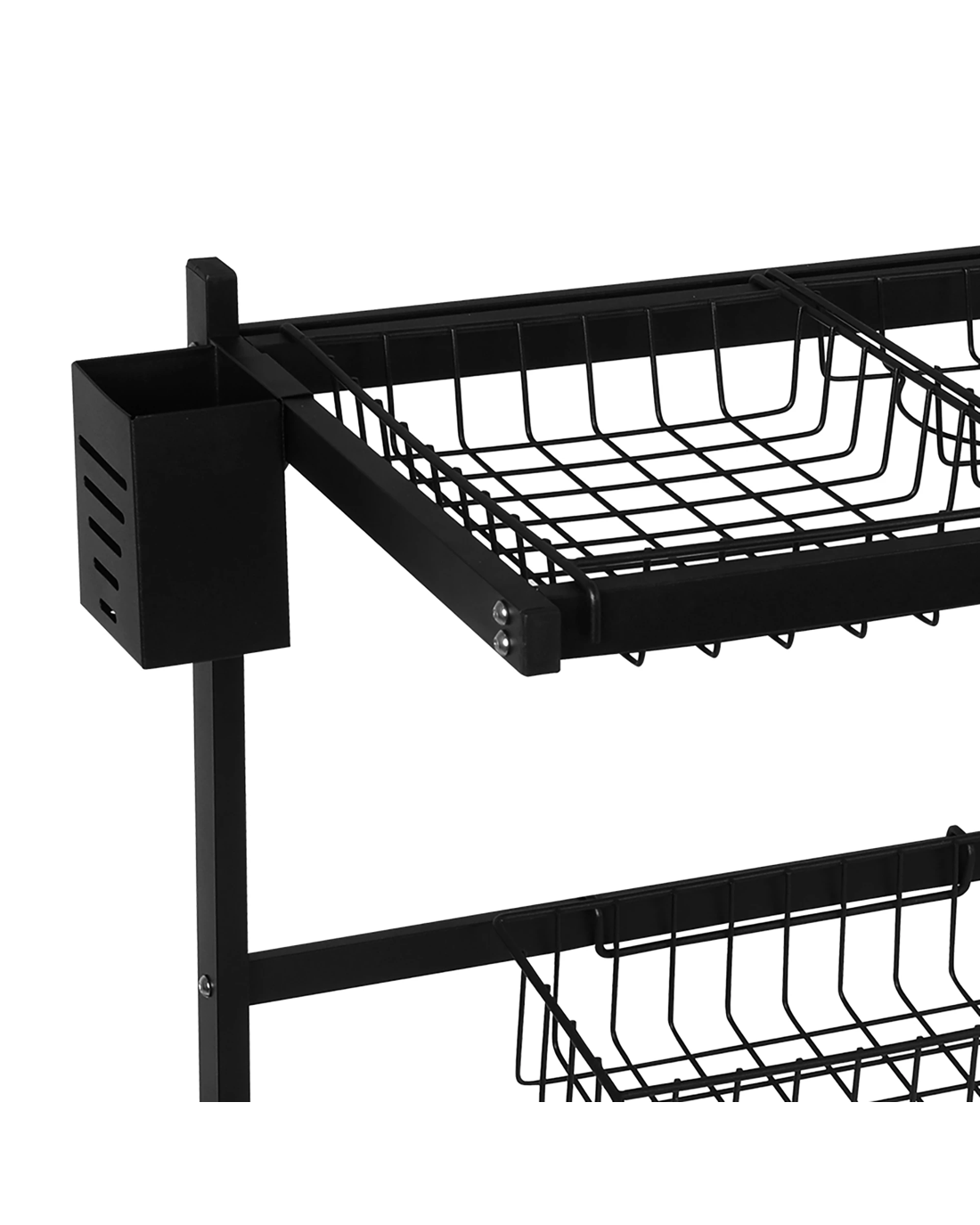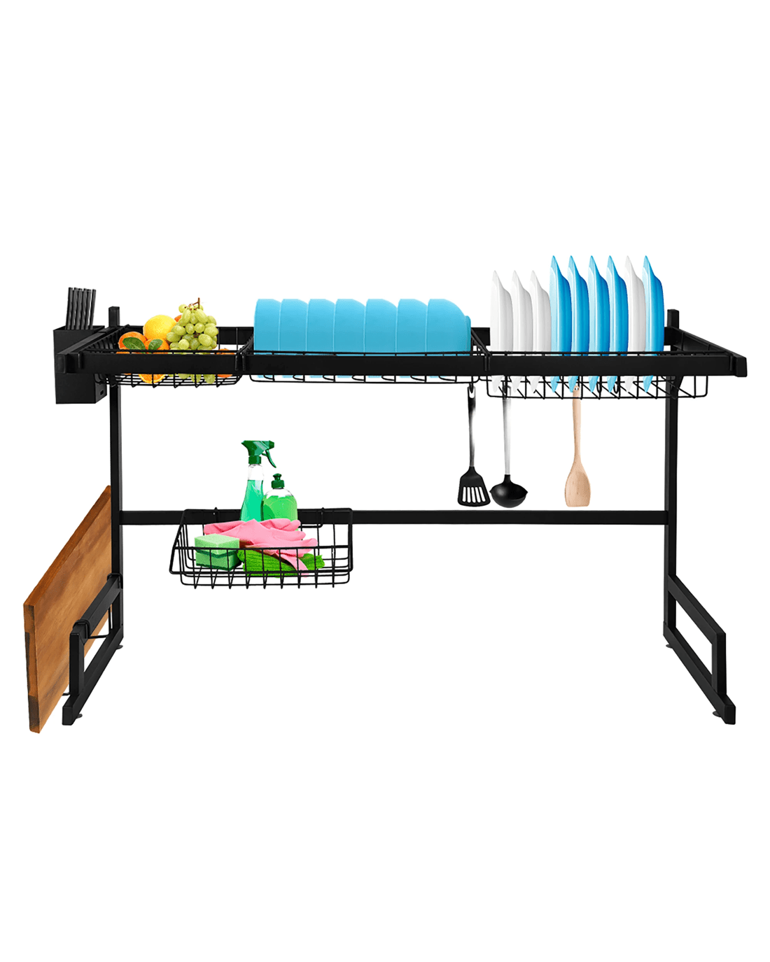 Made from premium quality stainless steel. The steel is provided with a black coated finish for added durability and stability. It is highly resistant towards rusting, use it without a worry underwater. Designed to withstand wear and tear effects. It is provided with an innovative L-shaped stand, stays stable and firm in its place, does not easily move from its place. For a strong fix to the kitchen floor, anti-slip bottom suction feet are provided. Stays in its place for longer and stronger. Ample space to store all your dishes and cutlery, built with unique 2 tier construction. Store all your kitchen essentials in one place. Assemble it with ease with simple instruction.