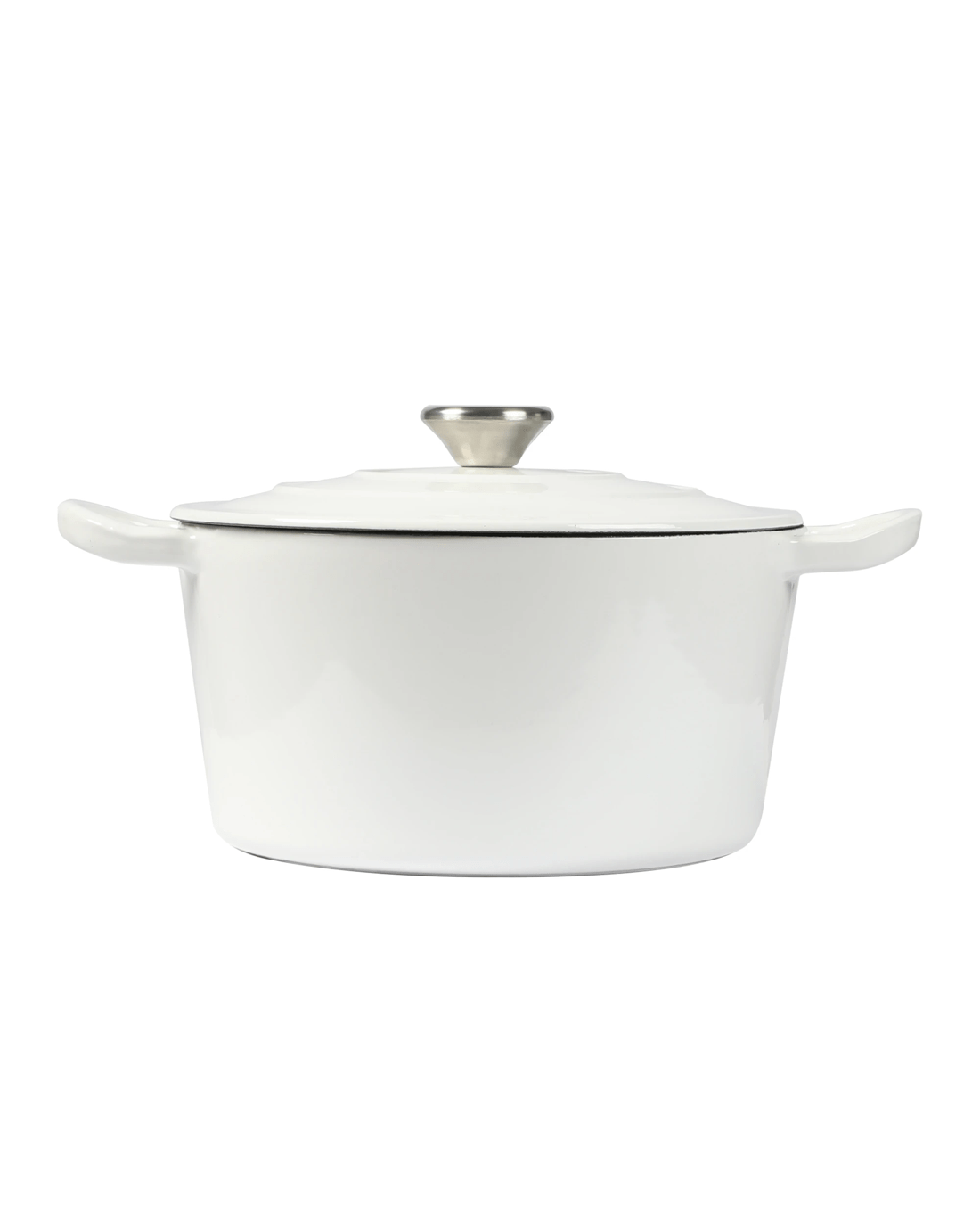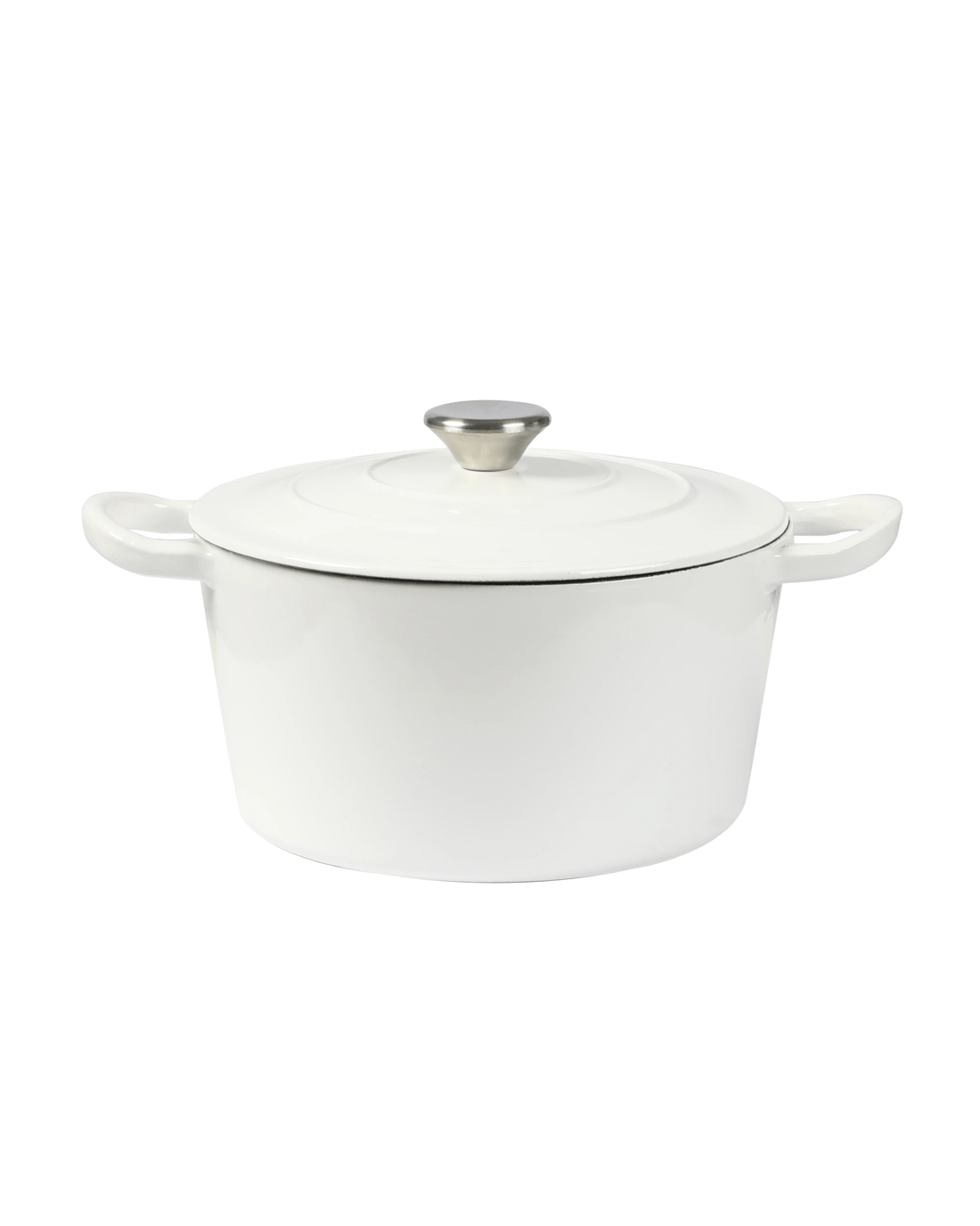 - Non-stick enamel interior for low-fat cooking
