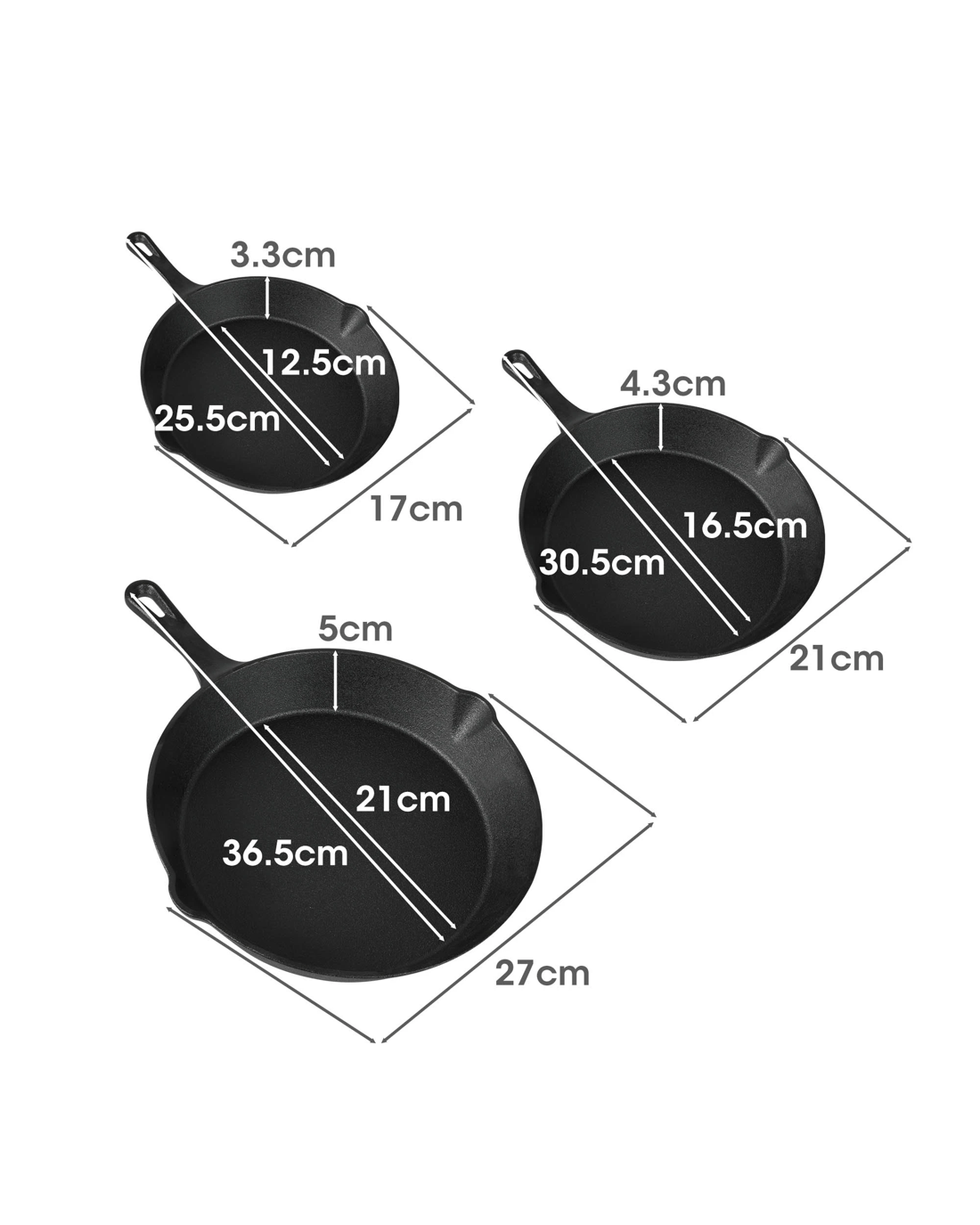 - 3 Piece Cast-Iron Non-Stick Frying Pans: Versatile sizes for all cooking needs in one complete non stick frying pan set.