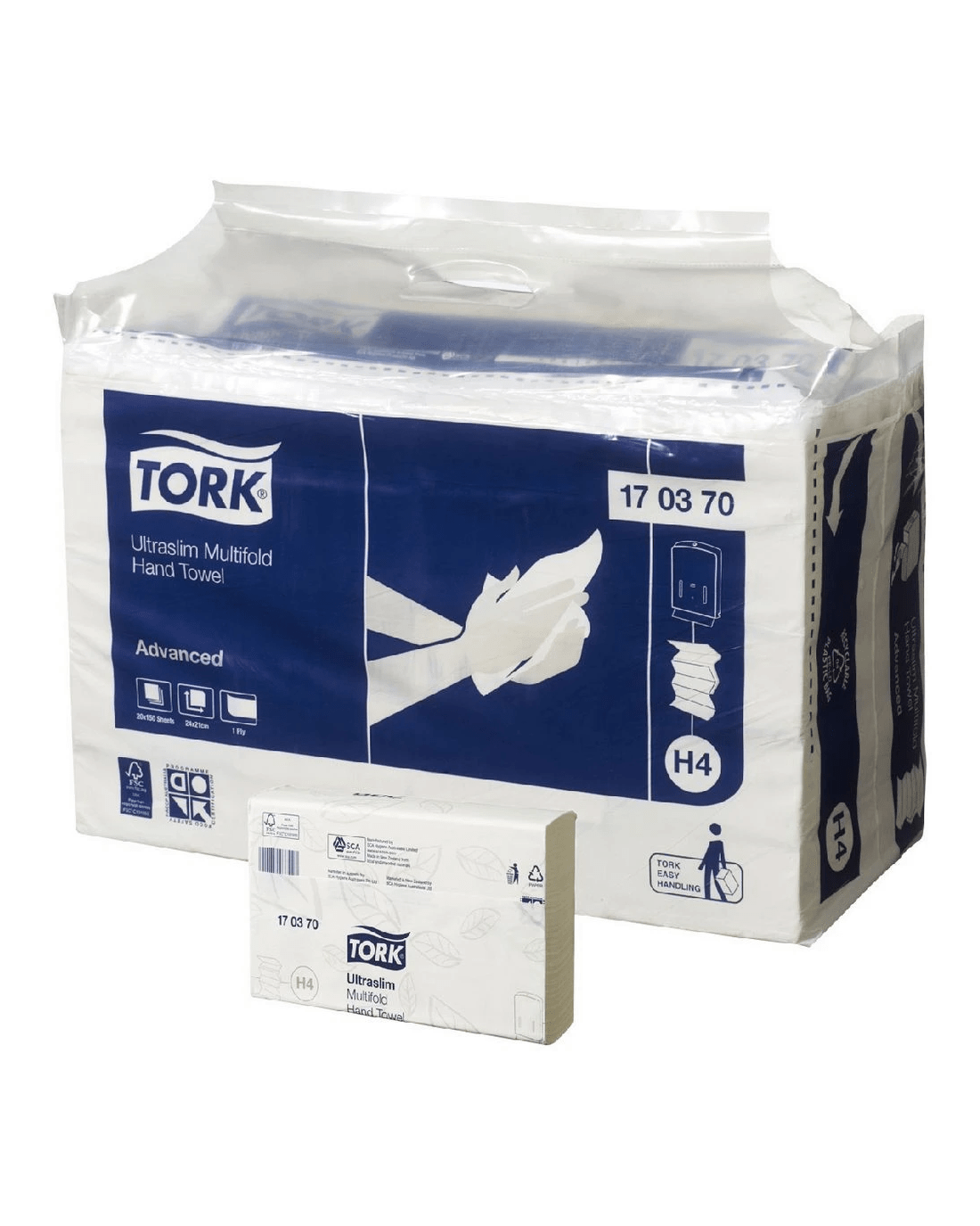 This Tork Ultraslim Multifold Hand Towel can be used to refill your Tork H2 Xpress Multifold Dispenser. The paper comes in a handy 20 pack with handles so you can easily carry the hand towel to each dispenser in your workplace. The multifold design of the paper means that sheets are pulled out as you remove the first, so that you only touch the sheet you are using, promoting hygienic use.