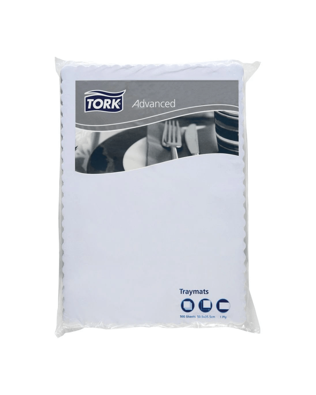 Enhance the presentation of meals with these Tork Tray Mats. Designed for convenience, they make cleaning up quick and easy while adding a touch of elegance to any tray or place setting. Perfect for hospitals, aged care facilities, and in-room service.