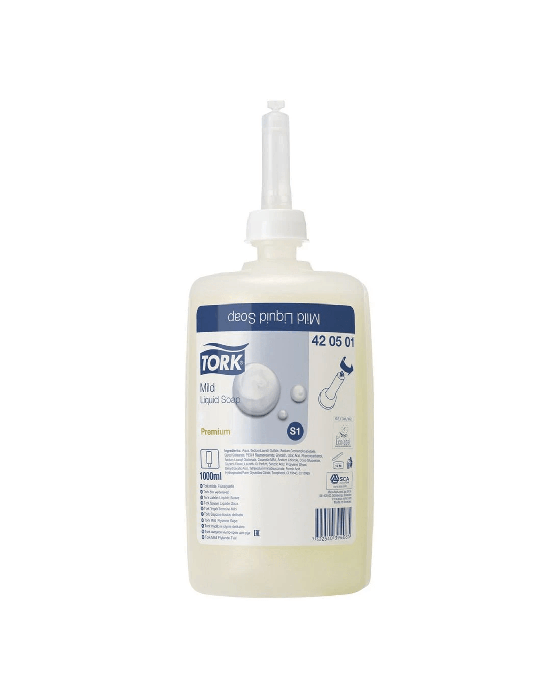 This Tork S1 Premium Mild Liquid Soap is great for washing your hands after kitchen or bathroom use. It has a mild formulation that's skin friendly and leaves the skin feeling soft and conditioned.