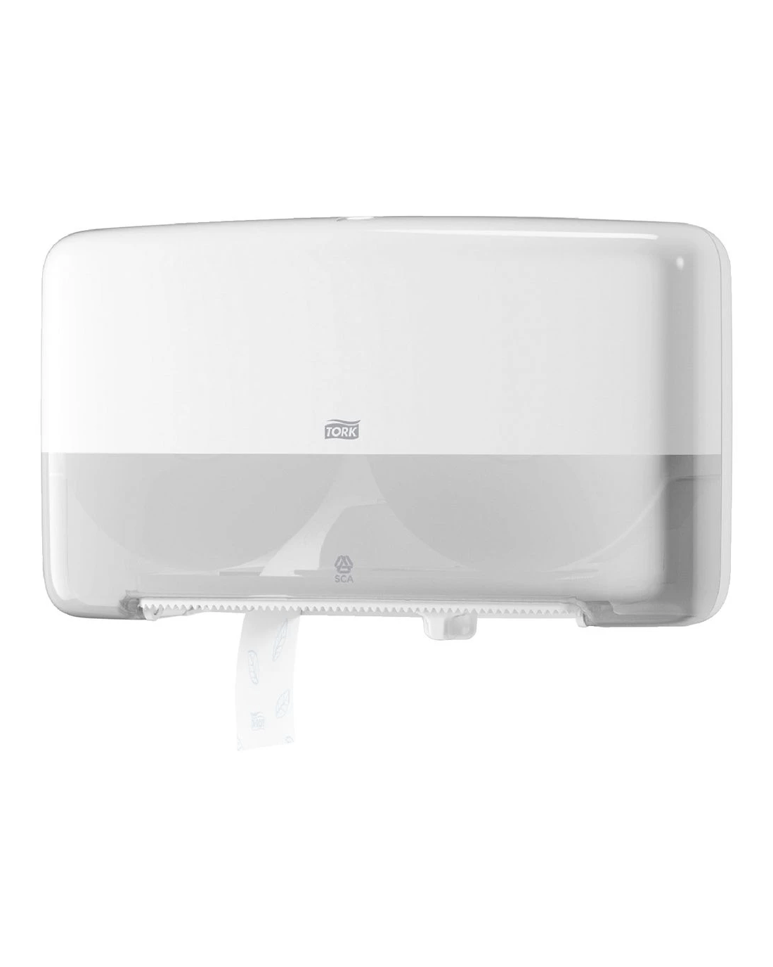 This Tork T2 Twin Mini Jumbo Roll Toilet Paper Dispenser can hold 2 jumbo rolls and has a trigger release design ensuring that the first roll is completely empty before the second roll can be used. Toilet paper can easily be taken from the unit without having to touch it, promoting good hygienic habits. This dispenser can easily be refilled, using the clear front window as a guide to when the roll needs to be replaced.