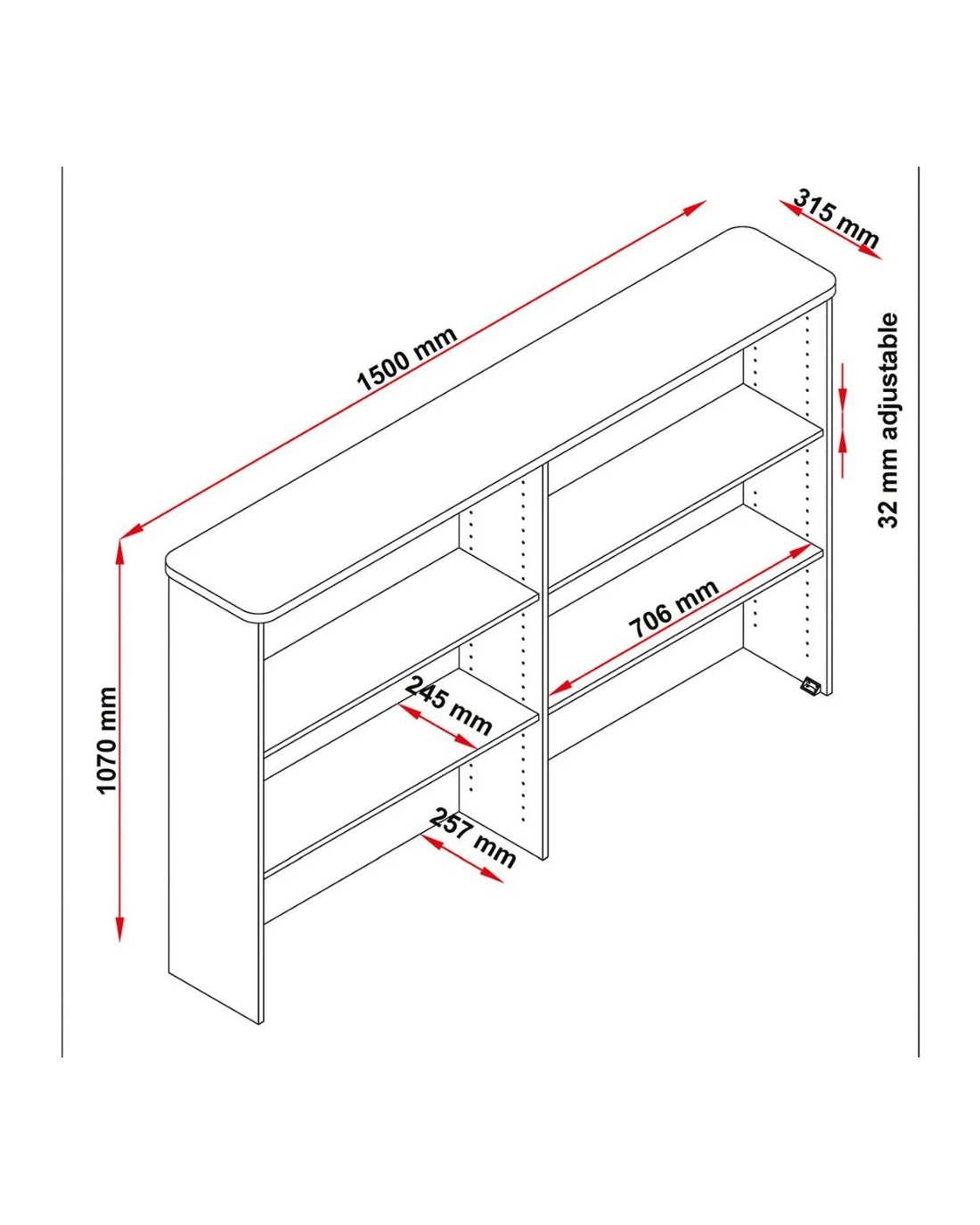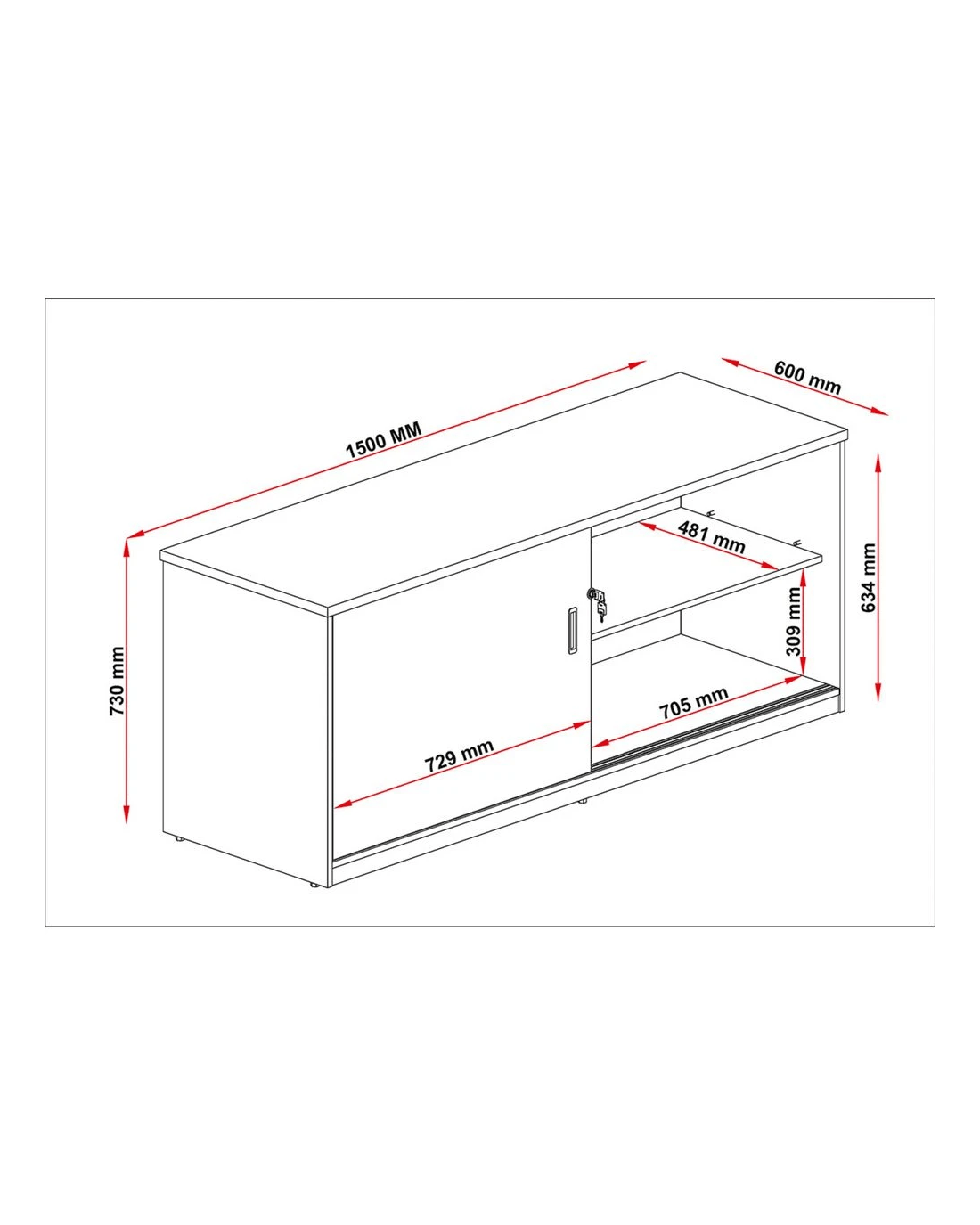 - Once assembled this credenza measures 1500 W x 600 D x 730 H mm while the hutch measures 1500 W x 320 D x 1080 H mm.