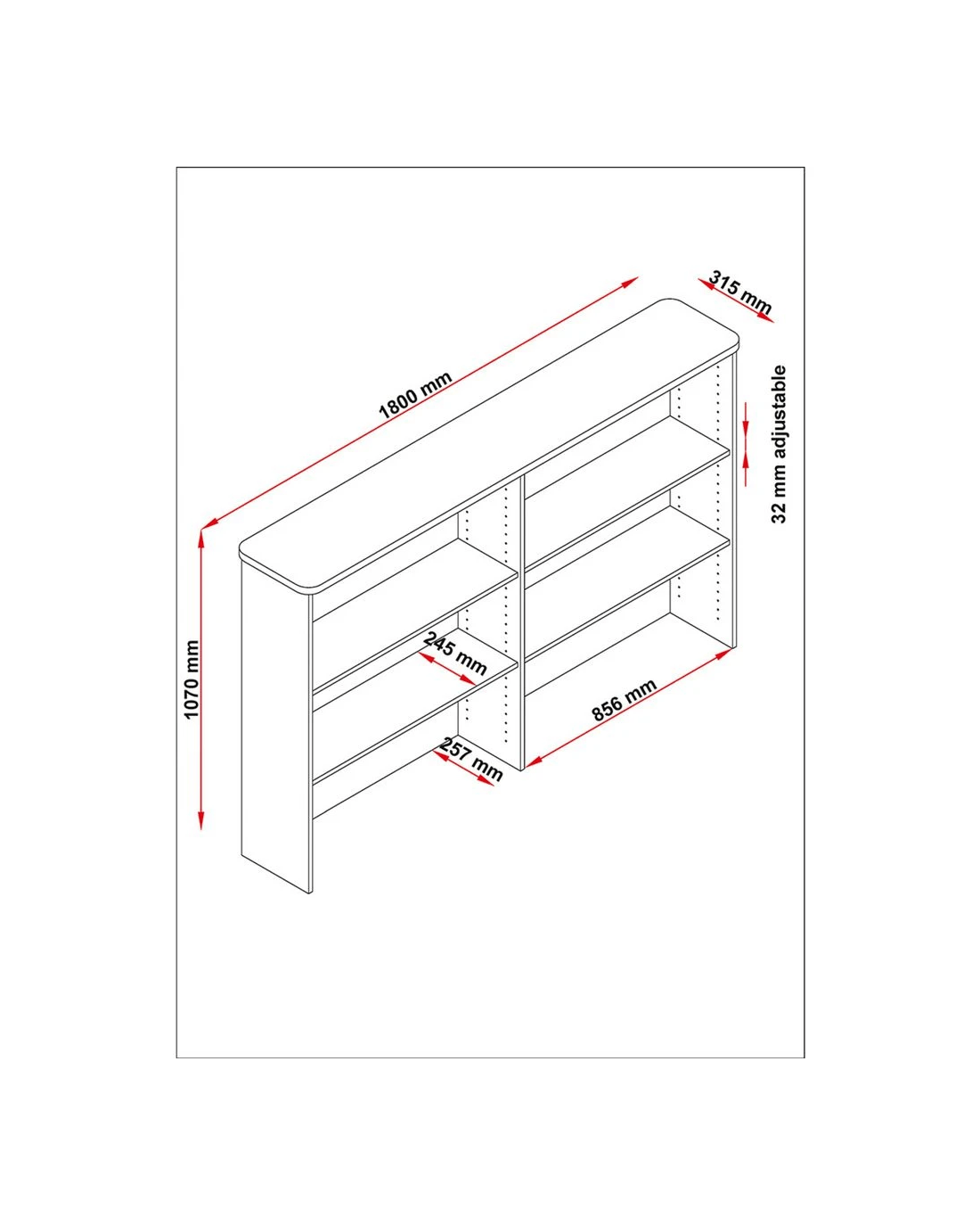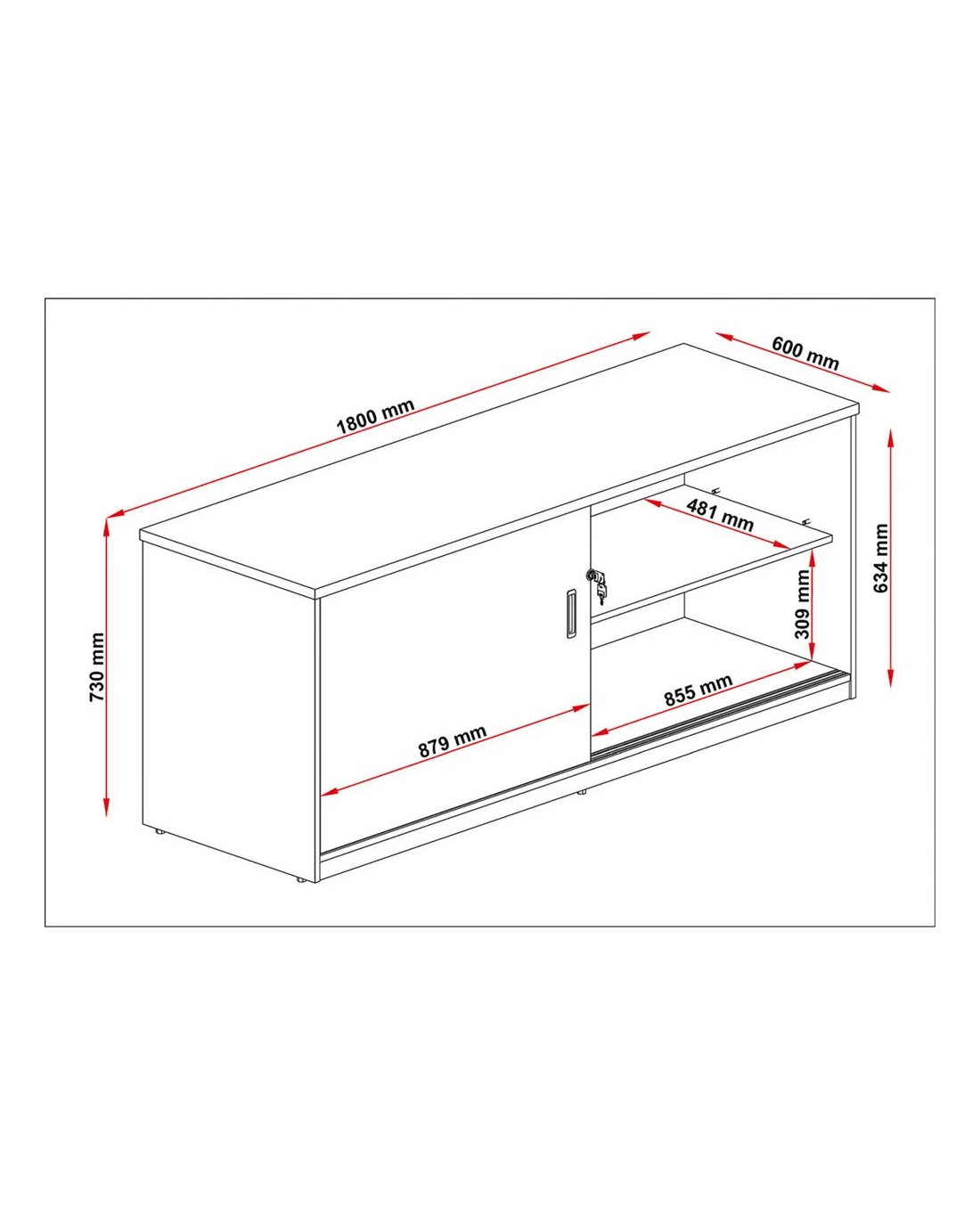 - Once assembled this credenza measures 1800 W x 600 D x 730 H mm while each hutch measures 900 W x 320 D x 1080 H mm.