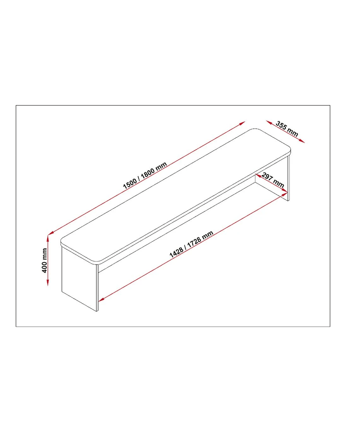 - Once assembled, it measures 1500 W x 350 D x 400 H mm.