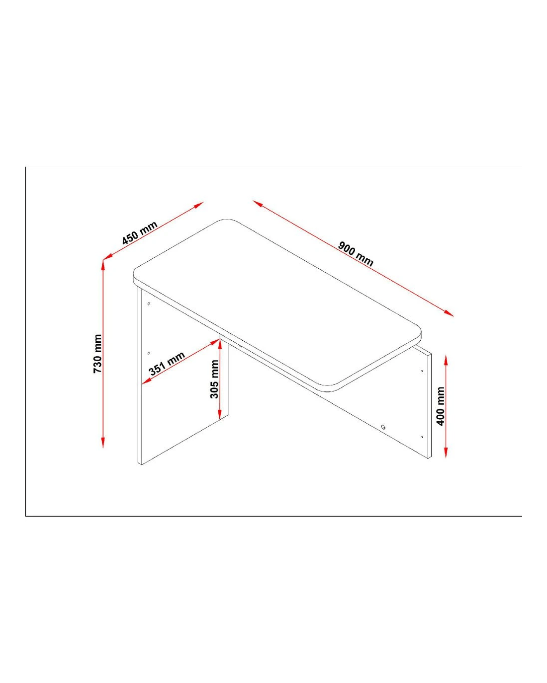• Once assembled, it measures 900 W x 450 D x 730 H mm.