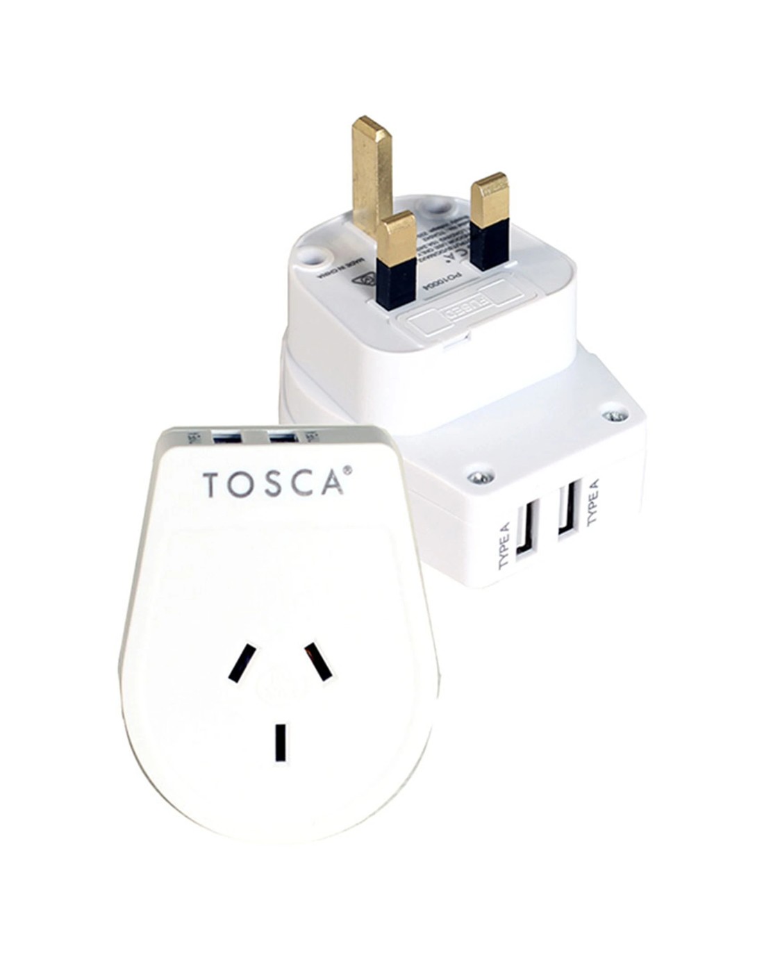 The Tosca OB Travel Power Adapter Converter Plug with USB is designed for Australian and New Zealand travellers heading to the United Kingdom or Hong Kong. This compact and lightweight travel accessory ensures you can power and charge your compatible devices seamlessly while abroad.