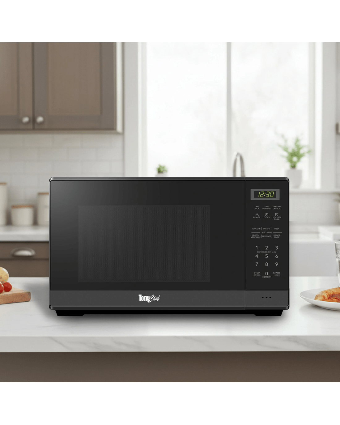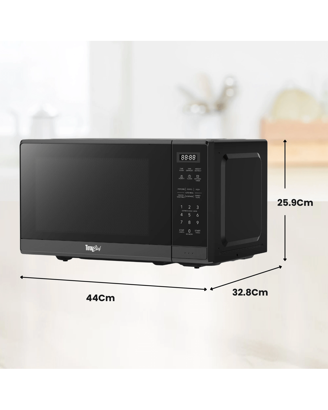Total Chef Microwave is Designed for Everyday Convenience: This compact 20L microwave combines performance and practicality in a sleek, space-saving design ideal for small kitchens, dorms, or offices. With 700 watts of output power and 11 power levels, it offers precise control for reheating, cooking, and defrosting. Six auto cook menus provide quick access to popular presets, while the Speedy Cooking function lets you heat food fast with a single touch. Weight and time defrost settings ensure consistent results, and multi-stage cooking allows seamless transitions between power levels for more complex meals. The built-in kitchen timer and clock help you stay on schedule, while the memory cook function saves your favorite settings. A removable 255 mm glass turntable ensures even heating and easy cleaning and safety features like the child lock make it a reliable choice for families