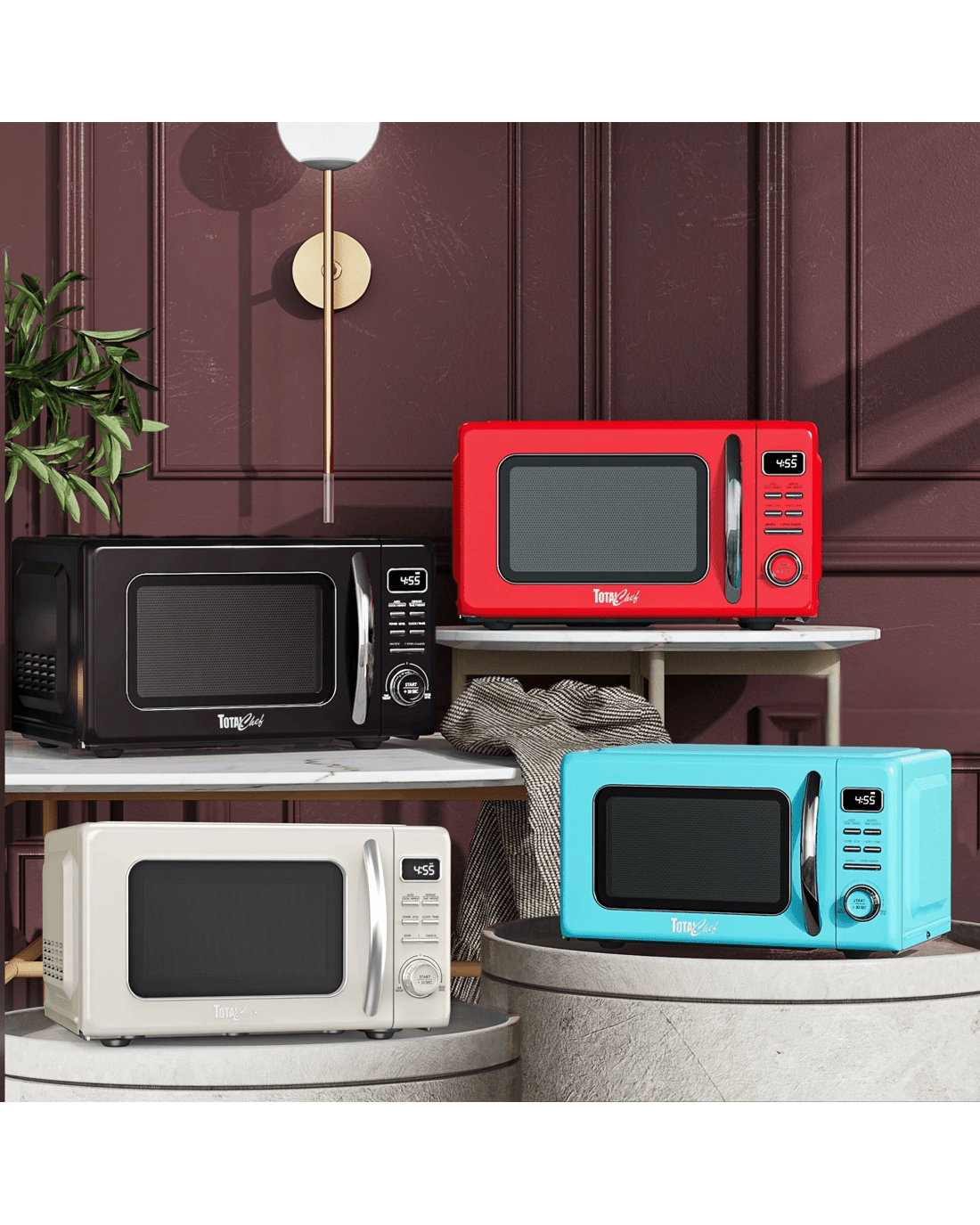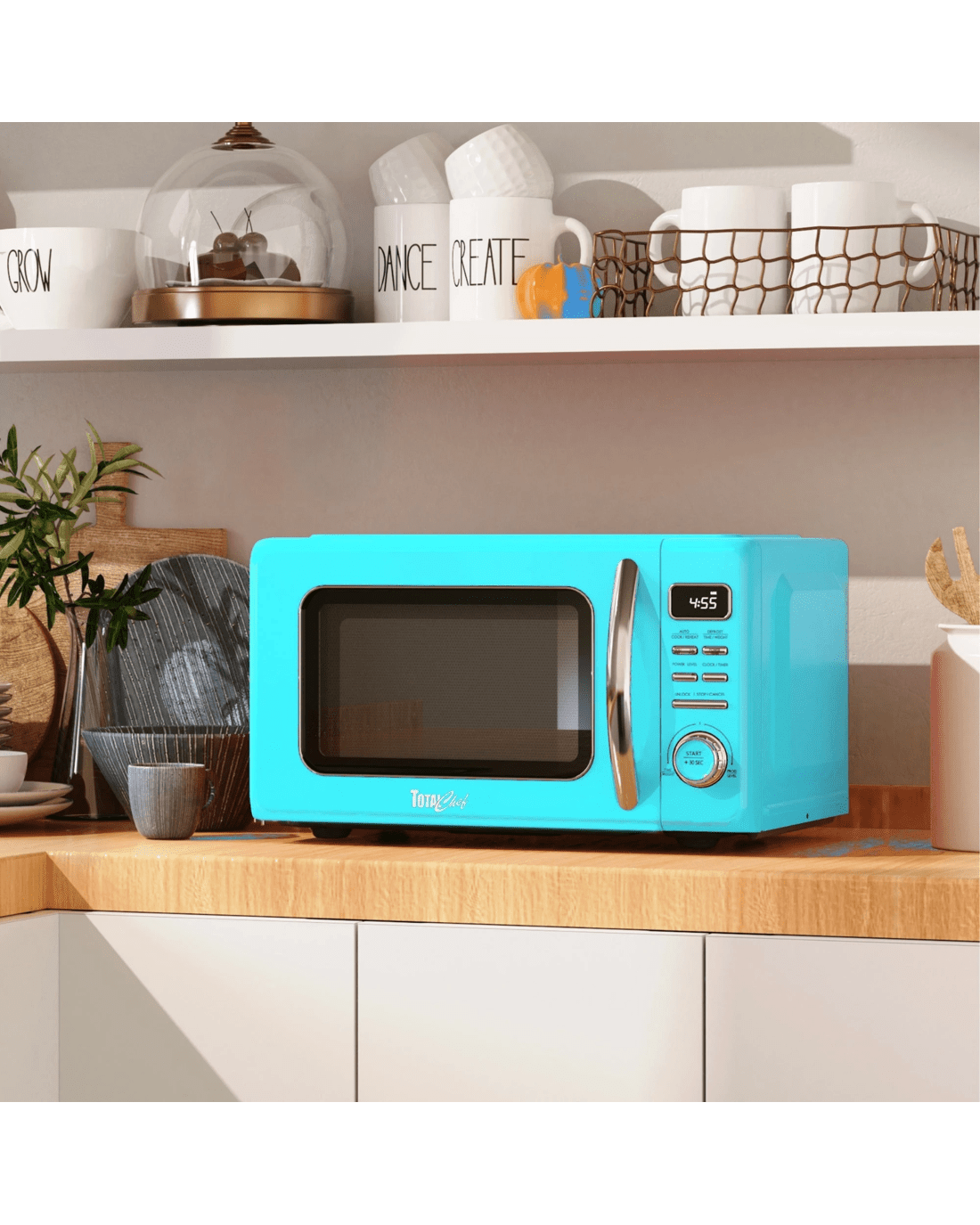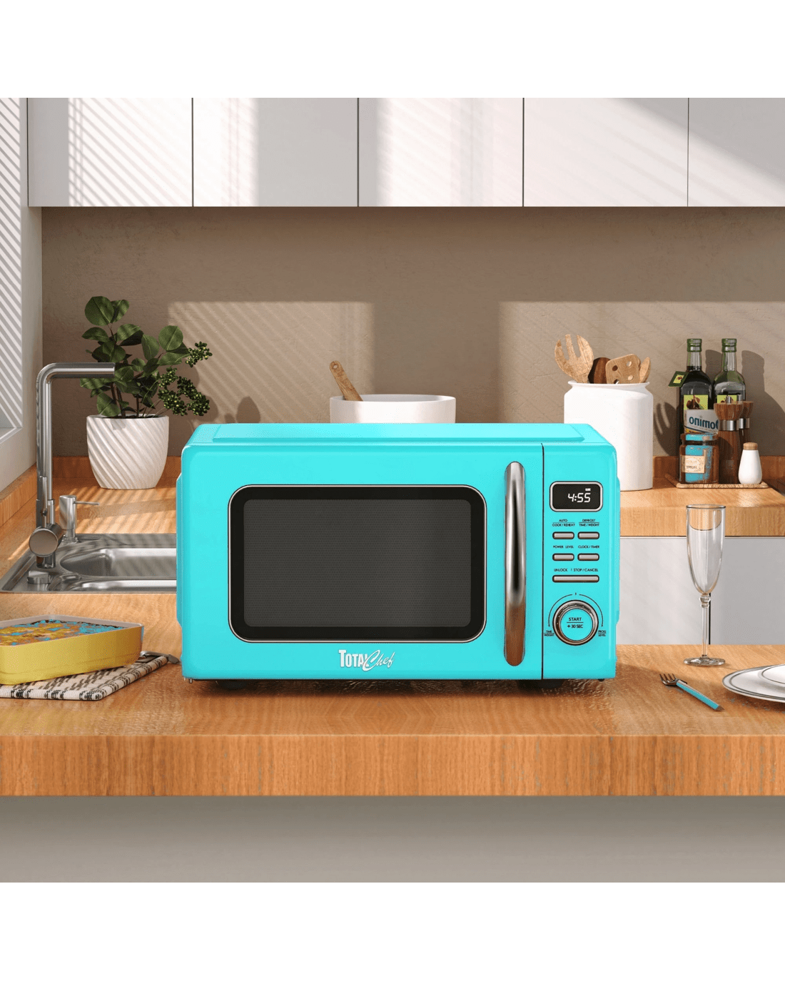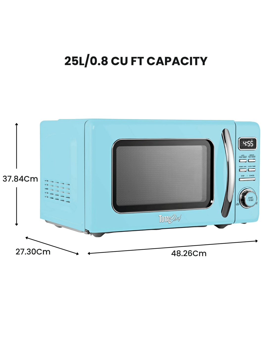 Bring a pop of retro charm to your kitchen with the Total Chef 25L Retro-Style Microwave Oven. This compact 25L. countertop microwave combines vintage design with modern performance, making it ideal for apartments, offices, cottages, and dorm rooms.