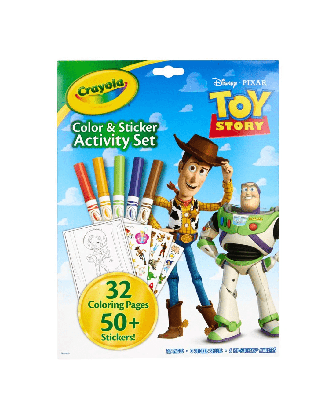 • It includes 32 Toy Story-themed colouring pages & 50+ stickers of Woody, Buzz, Jessie and friends.
