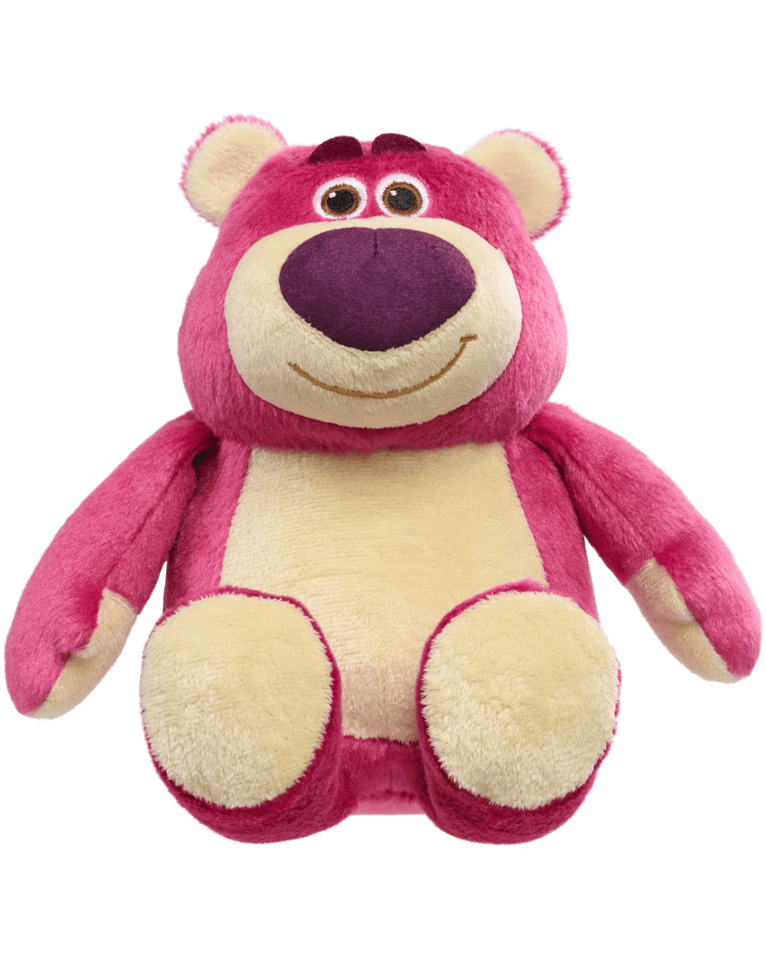 Meet your new favourite cuddle buddy, the Lotso Plush Toy from Toy Story. With its soft magenta and cream-coloured fur and gentle embroidered features, this plush Lotso brings comfort and charm to every moment. Whether it's story time or playtime adventures, Lotso promises to be the best companion for hugs and giggles. He looks just like he’s popped out of Toy Story 3 and is ready to share big bear hugs and plenty of smiles. Bring him home today and let Lotso brighten up your child’s room and inspire endless imaginative play!