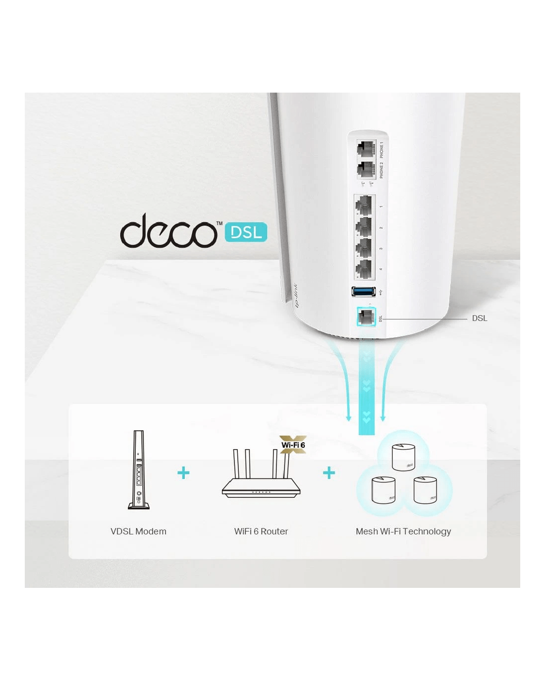 Sold by OfficeworksTP-Link Deco AX5400 VDSL Mesh WiFi 6 Modem Router 3 Pack