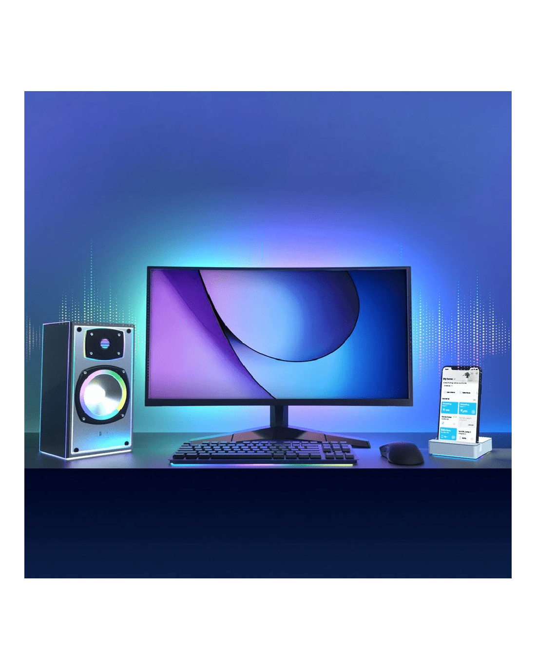 - Play music through your mobile device and sync the lights to the frequency and beat.