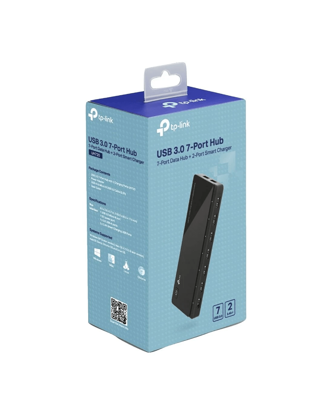 The TP-Link USB Charging Hub allows you to expand your connectivity options when you're working or studying. It provides 7 additional USB ports with data transfer speeds up to 5 Gbps, and 2 charging ports for ultra-fast charging of your smart device. It has a sophisticated circuit design that protects you devices from over-heating and over-voltage.