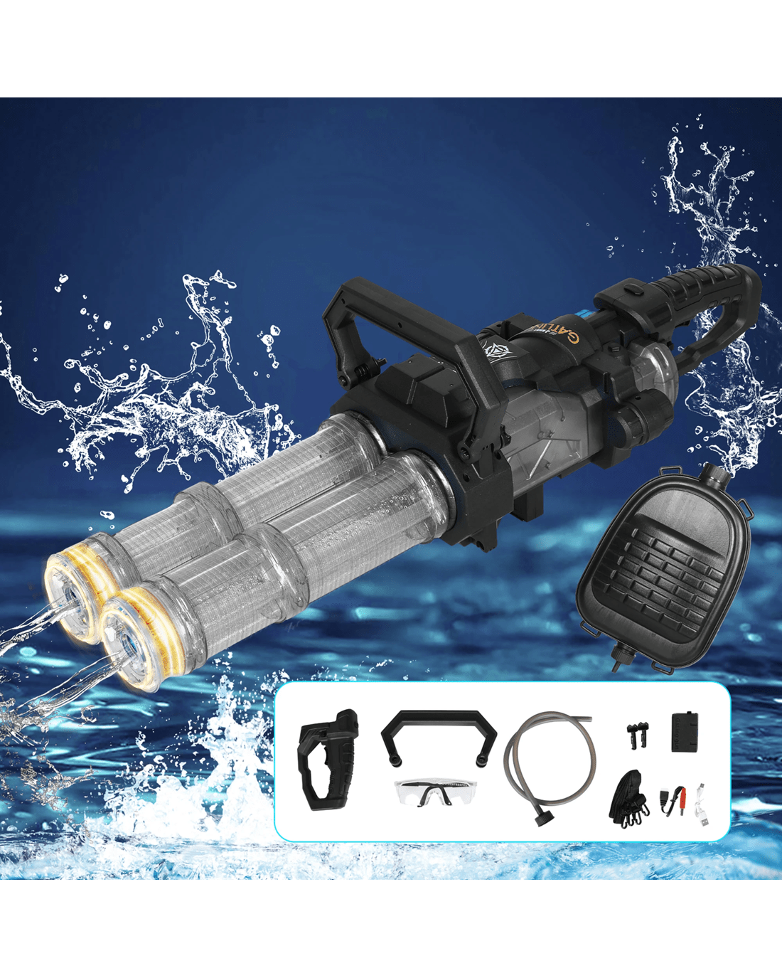 - Automatic electric dual-barrel water gun