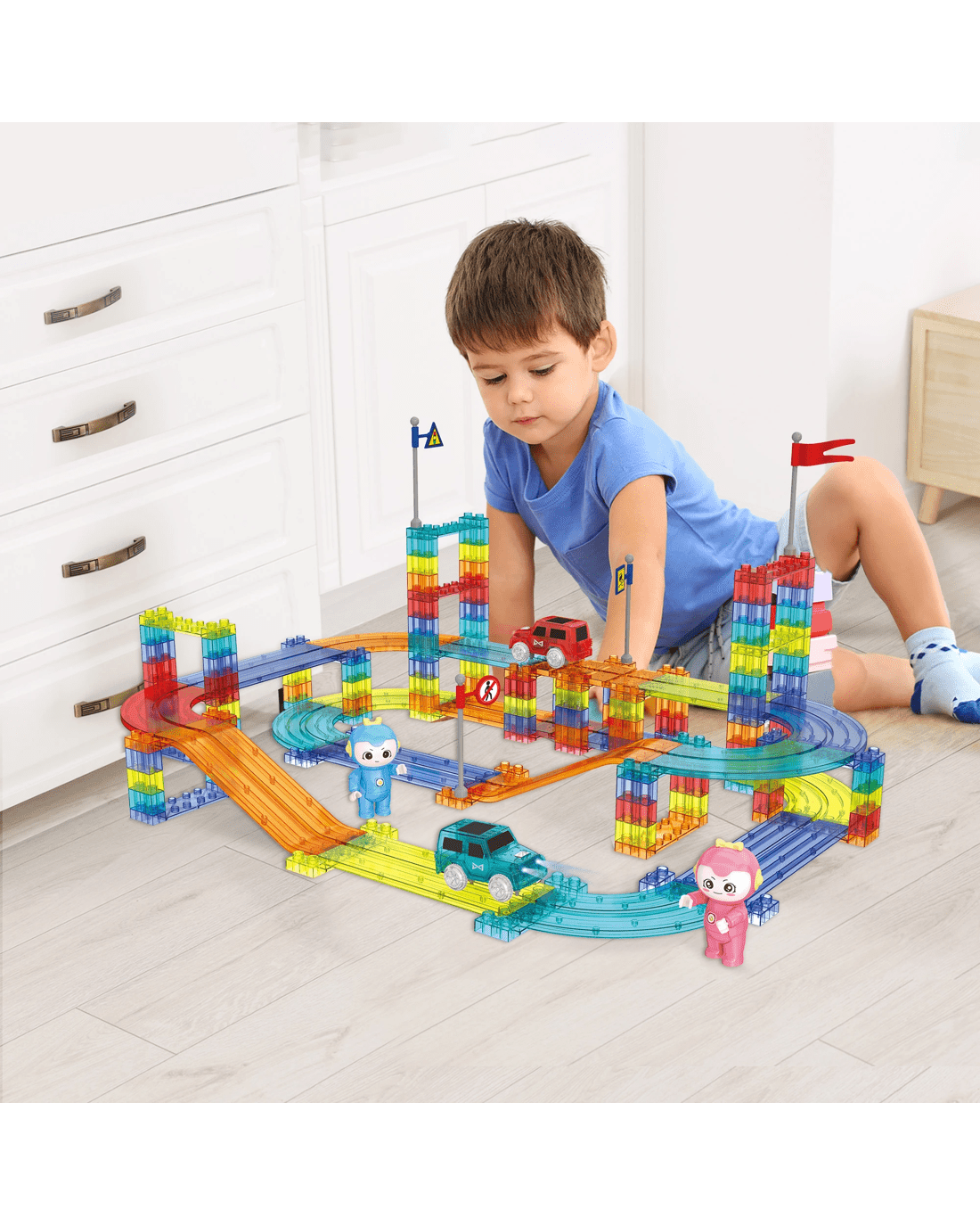 Teach your kids how to build stable and fun tracks with their dinosaur-themed magnetic building blocks and rolling balls. This will spark a love for engineering and creativity. Or simply let them have a great time playing with the combination of movement and stillness.