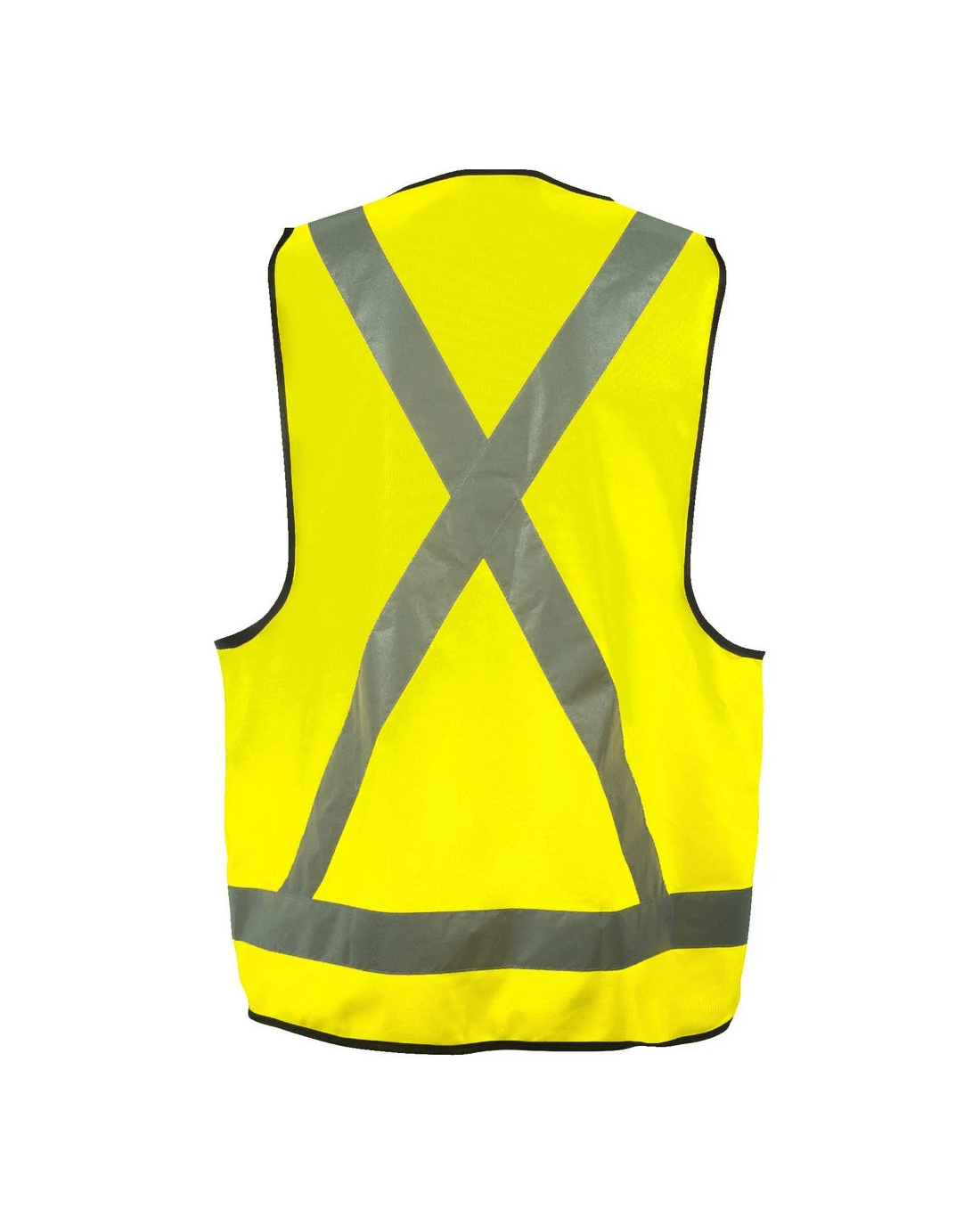 - It features silver reflective tape strips on the front and an 'X' mark on the back.