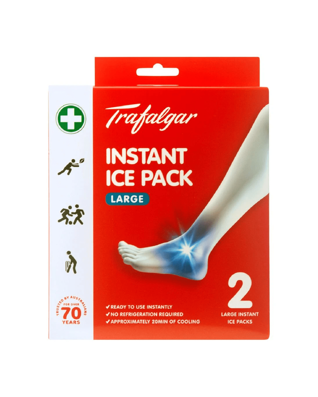 Trafalgar Instant Ice Packs provide instant cold relief for up to 20 minutes without the need for prior refrigeration, making them perfect for keeping handy in your first aid kit, car glove box or simply around the home. They're suitable for use treating bruising, swelling, sprains and strains and can also be used to relieve fevers or insect bites. Stay stocked up with this handy pack of 2.
