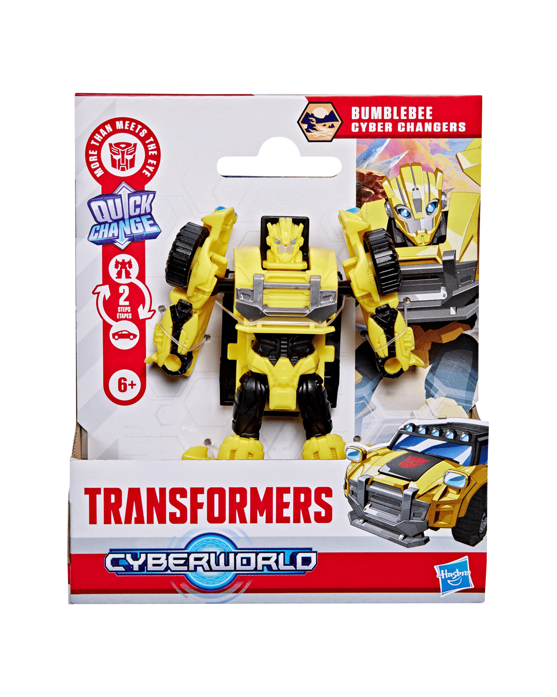 2-in-1 cyber changers figure: This articulated Transformers action figure changes from robot toy to vehicle toy in 3 simple steps.