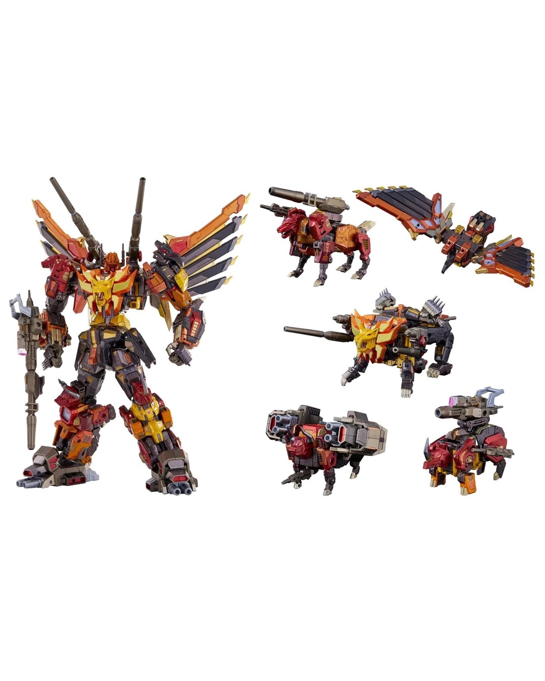 - Includes 5 combiner figures, accessories, and instructions