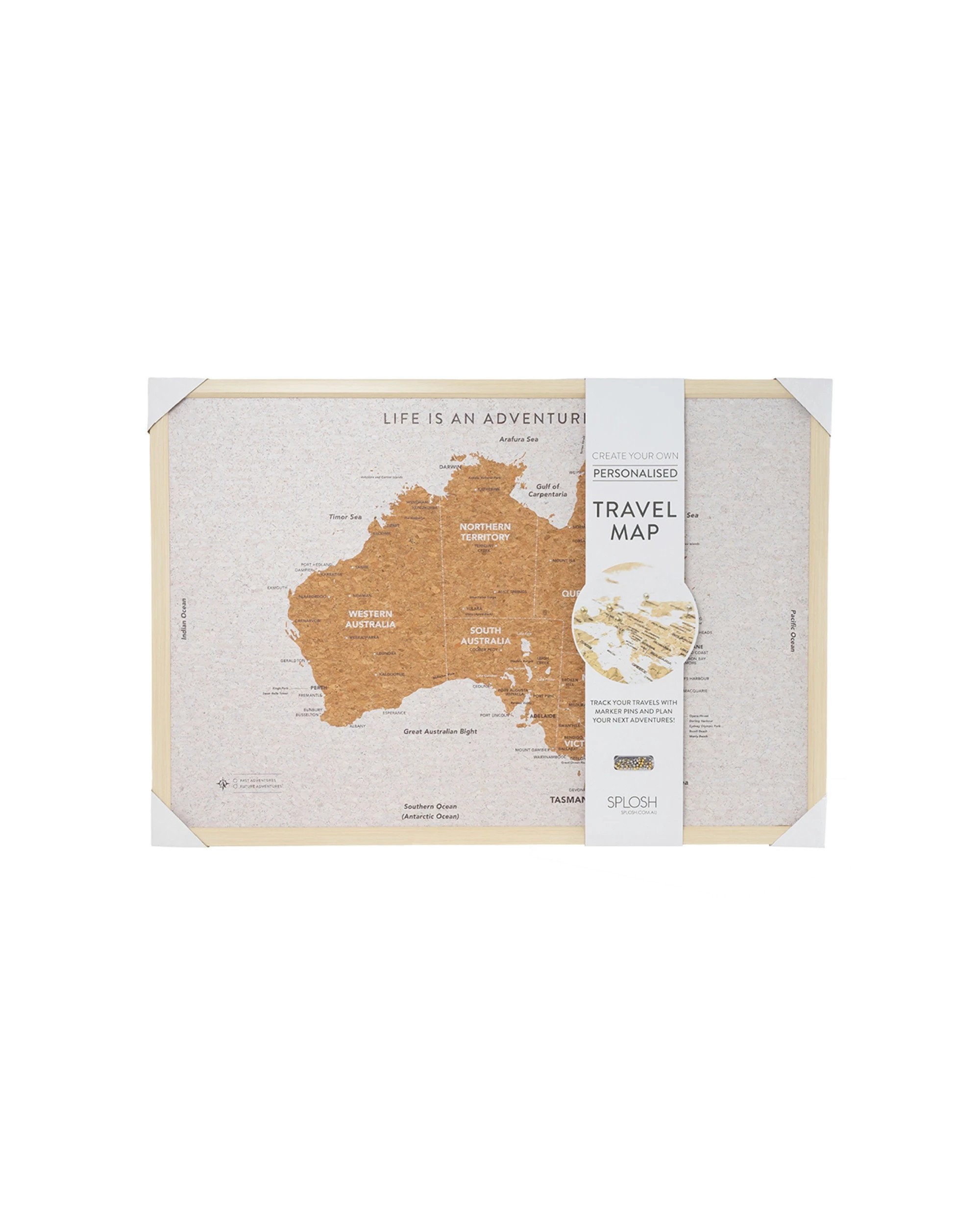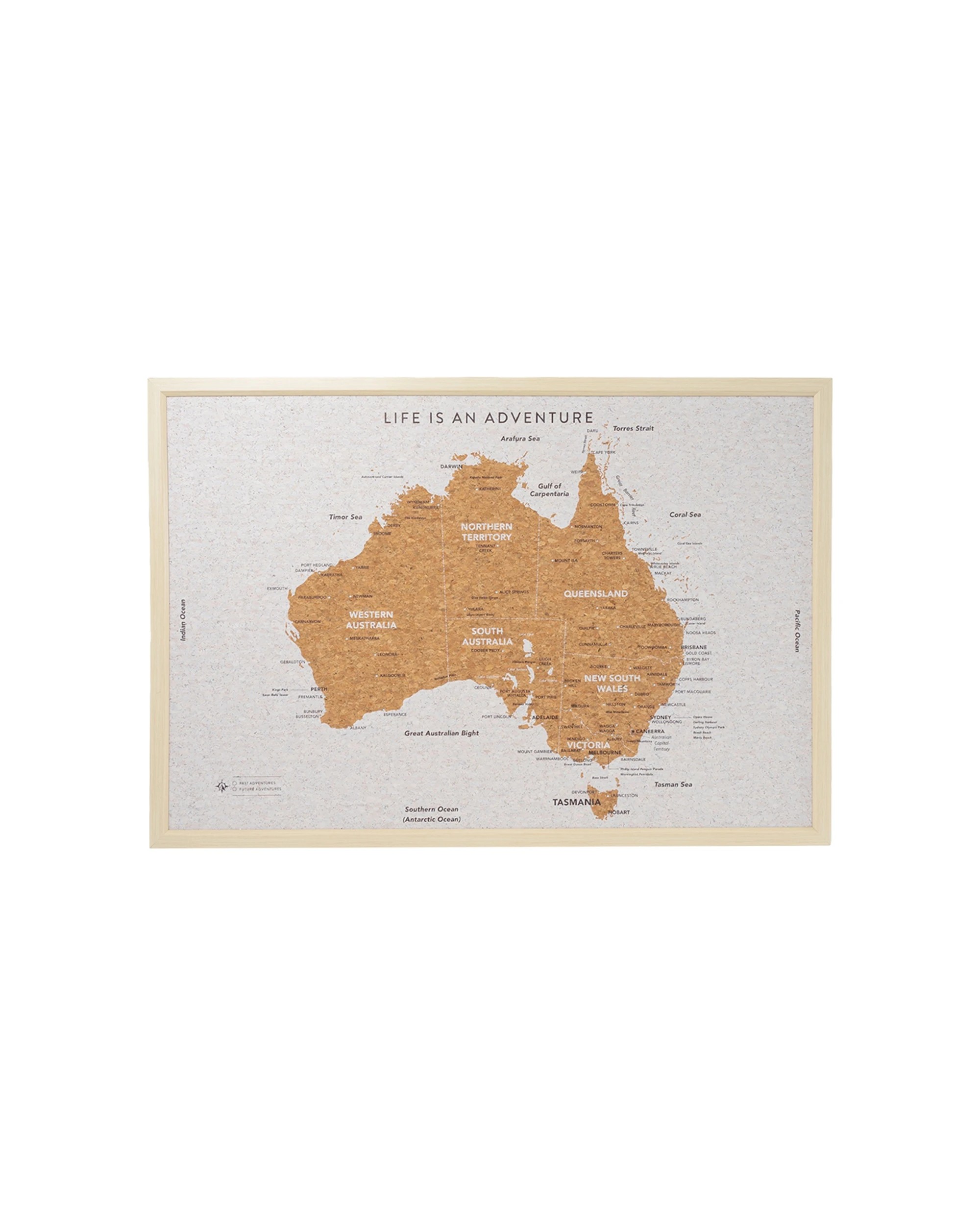 Travel 99x70cm Large Australia Map Adventure/trip Framed Cork Board W/ Pins - Brown