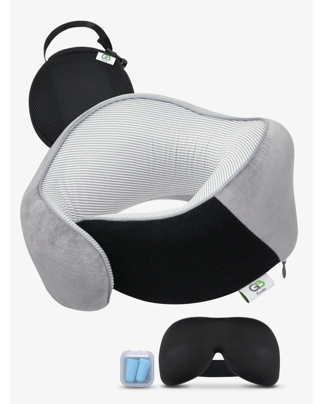 Buy one neck pillow get FREE $20 value gifts! Including a 3D Eye Mask, Noise-Canceling Earplugs, and a Travel Pillow Bag.