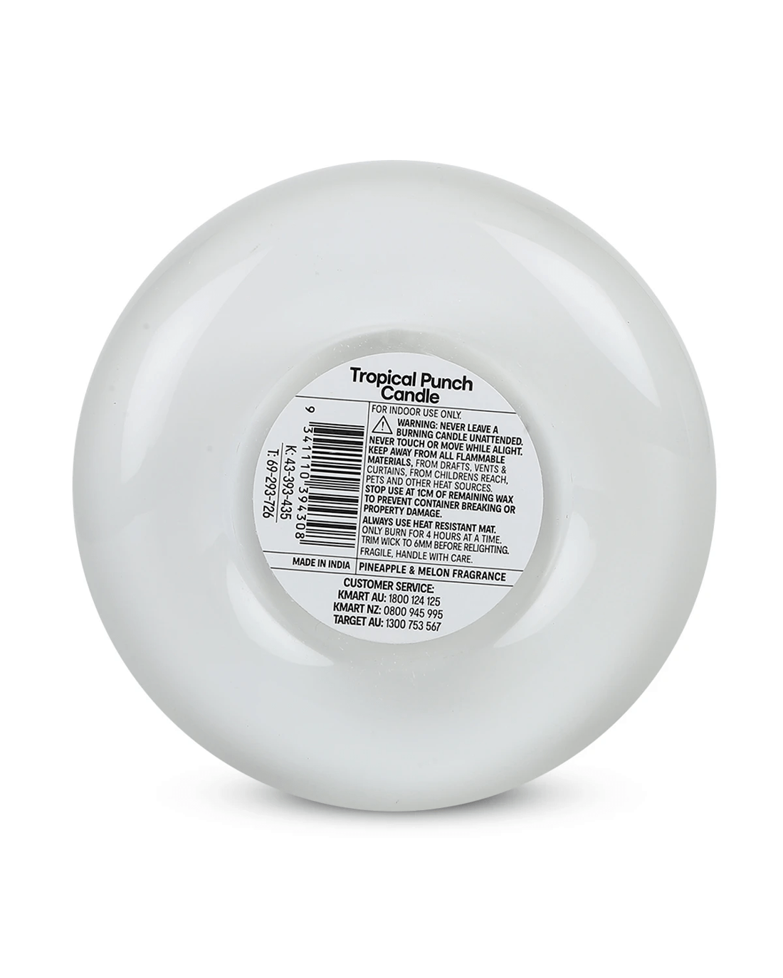 This Tropical Punch Fragrant Candle fills your space with a sweet scent, perfect for creating a refreshing and uplifting atmosphere.