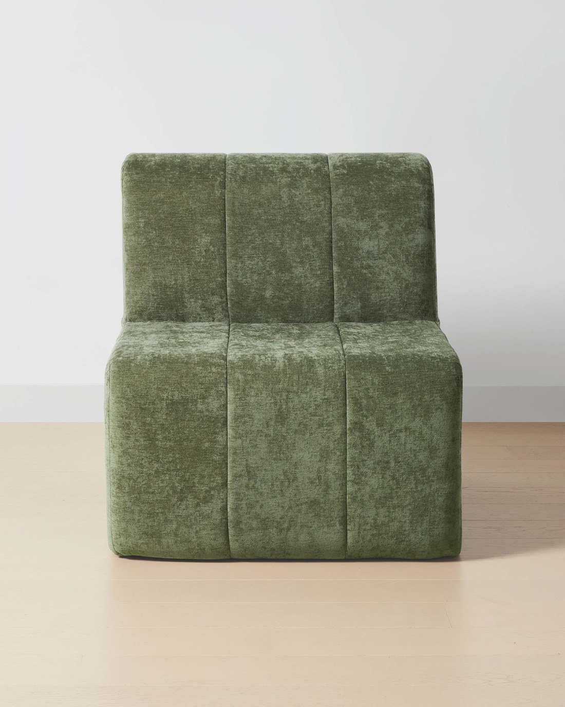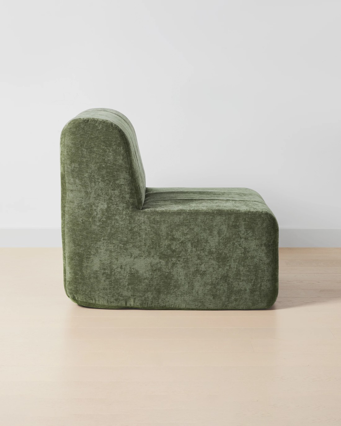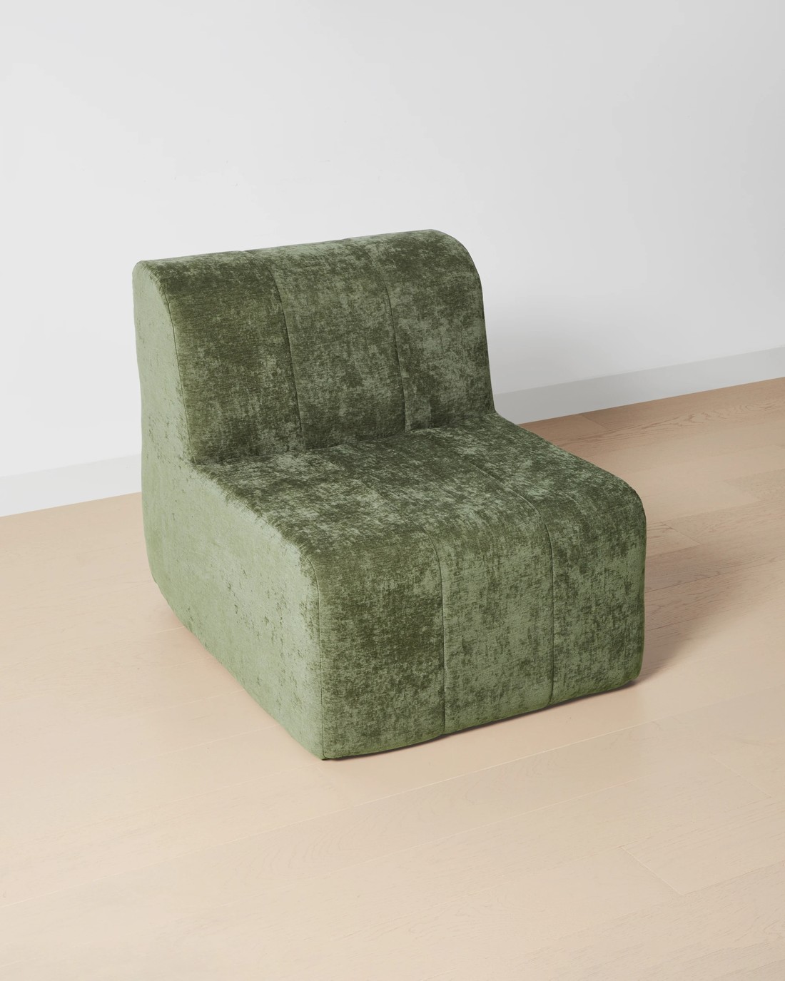 Elegant Upholstery: Wrapped in green chenille fabric, the chair introduces a soft texture and a refined look that complements modern interiors.