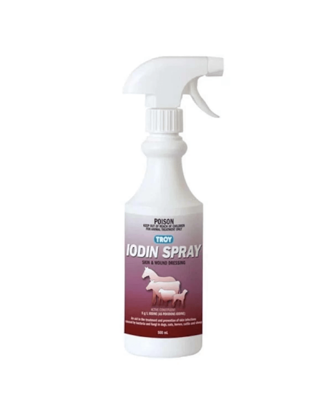 Troy Iodin Antiseptic and Wound Spray Anti Bacteria Anti Fungi 500ml - quality equine care product. Use per label directions; always provide fresh water and quality forage. 500ml.