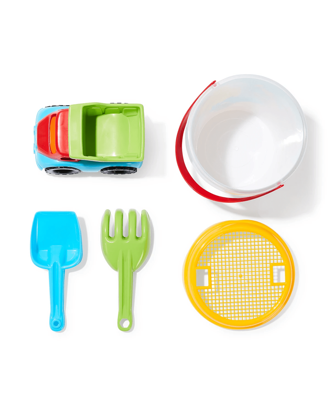 - Includes 1 x bucket, 1 x sand sifter, 1 x rake, 1 x shovel and 1 x sand toy