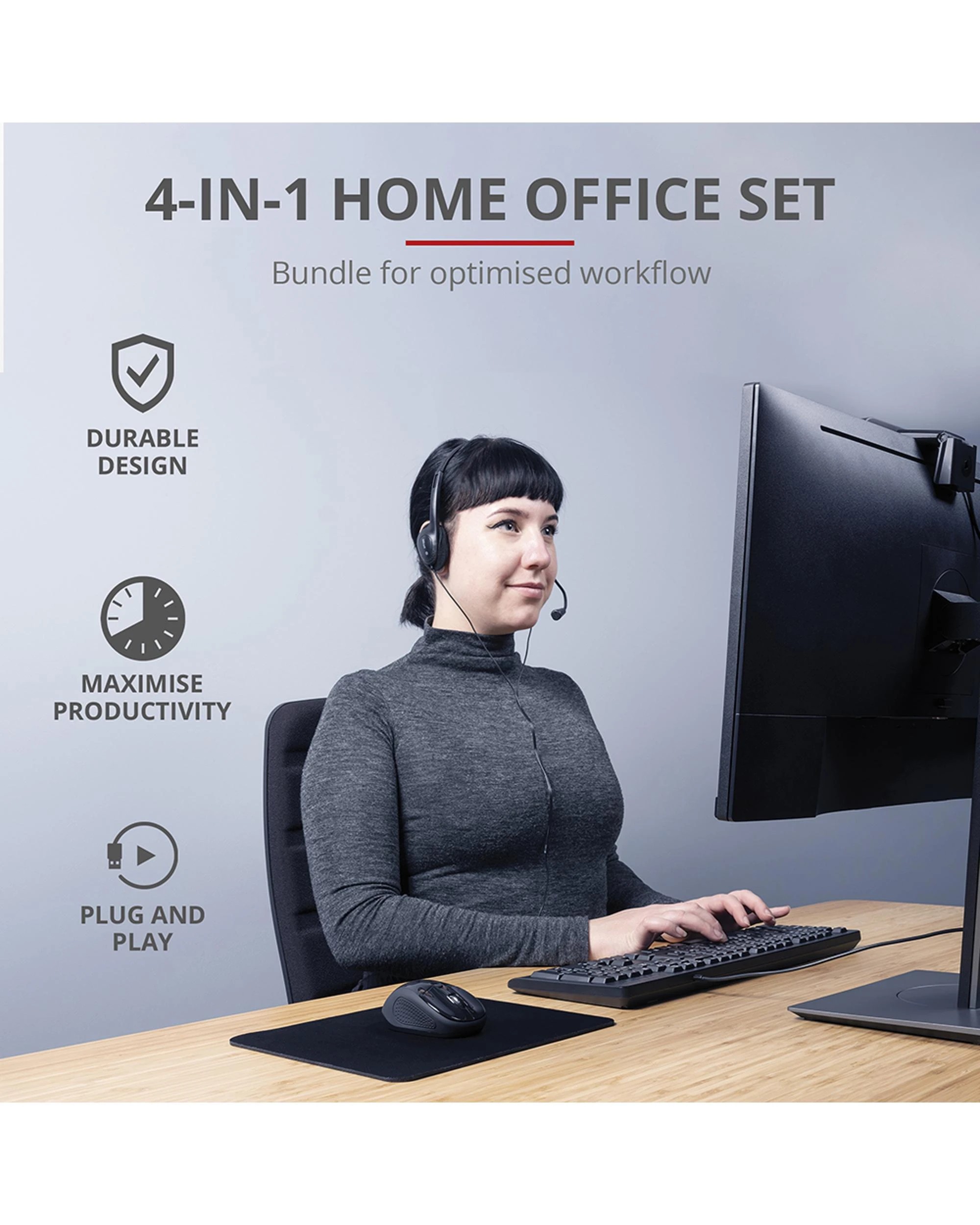 Trust International Trust Primo 4-in-1 Complete Home Office Set - Black