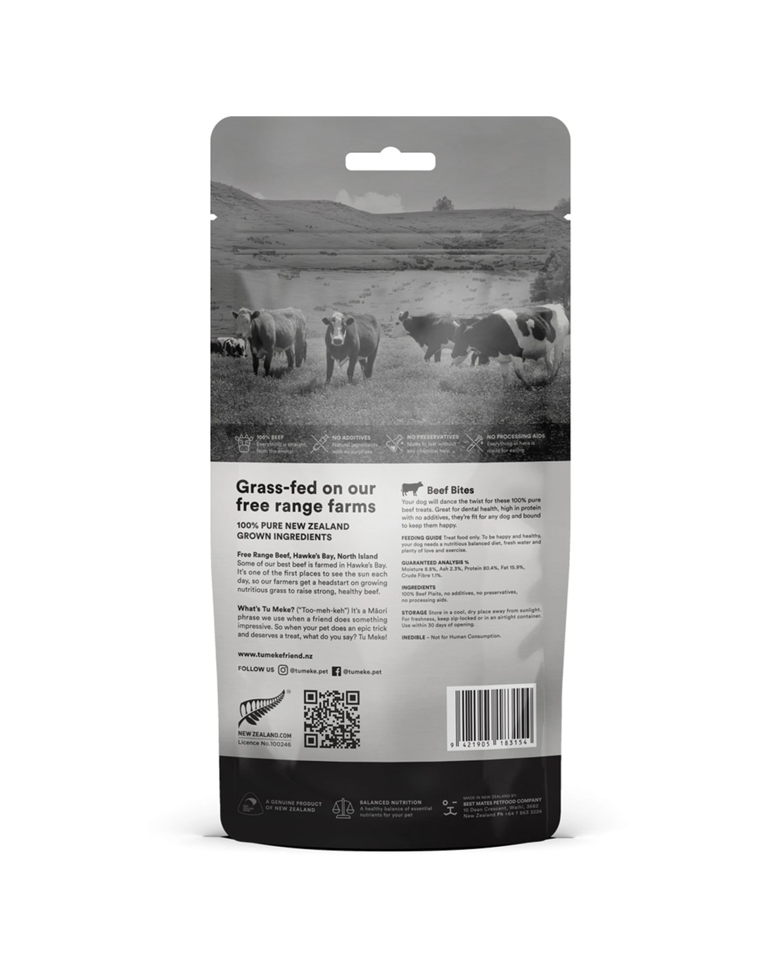 The TU MEKE Friend 50g Air-Dried Natural Dog Treats Beef Bites are designed for rewarding your dog with a healthy, natural snack. Made from 100% pure beef sourced from New Zealand, these treats are a nutritious choice for your furry friend, supporting their overall health and wellbeing.