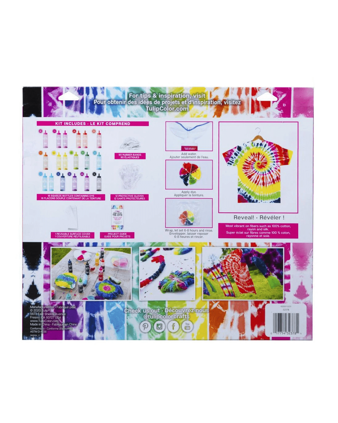 The Tulip One Step Tie Dye Kit includes 18 colours so you can get creative. It's easy to use and comes with everything you need to update your garments.