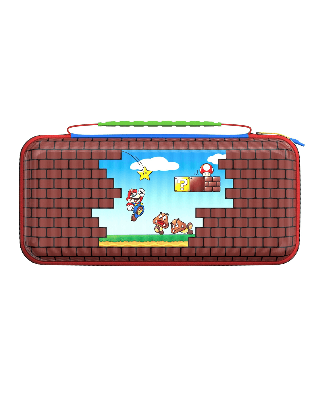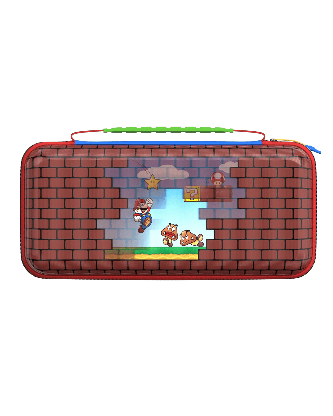 Make every adventure effortless with the PlayTrek Travel Case Mario Bricks Edition for Nintendo Switch 2. This officially licenced case boasts striking lenticular Mario Bricks artwork, creating eye-catching visual effects as you move. Your console stays secure with a rugged EVA-moulded shell and a TPU-coated polyester exterior, offering solid protection wherever you travel. Inside, a padded flap softly cushions your screen and holds game cards, while a smart mesh pocket keeps accessories tidy and accessible. The handy carrying handle is perfect for on-the-go fun. Take your Switch 2 with you confidently and keep everything organised in style. Embrace more memorable gaming journeys and treat yourself to ultimate convenience today.Features