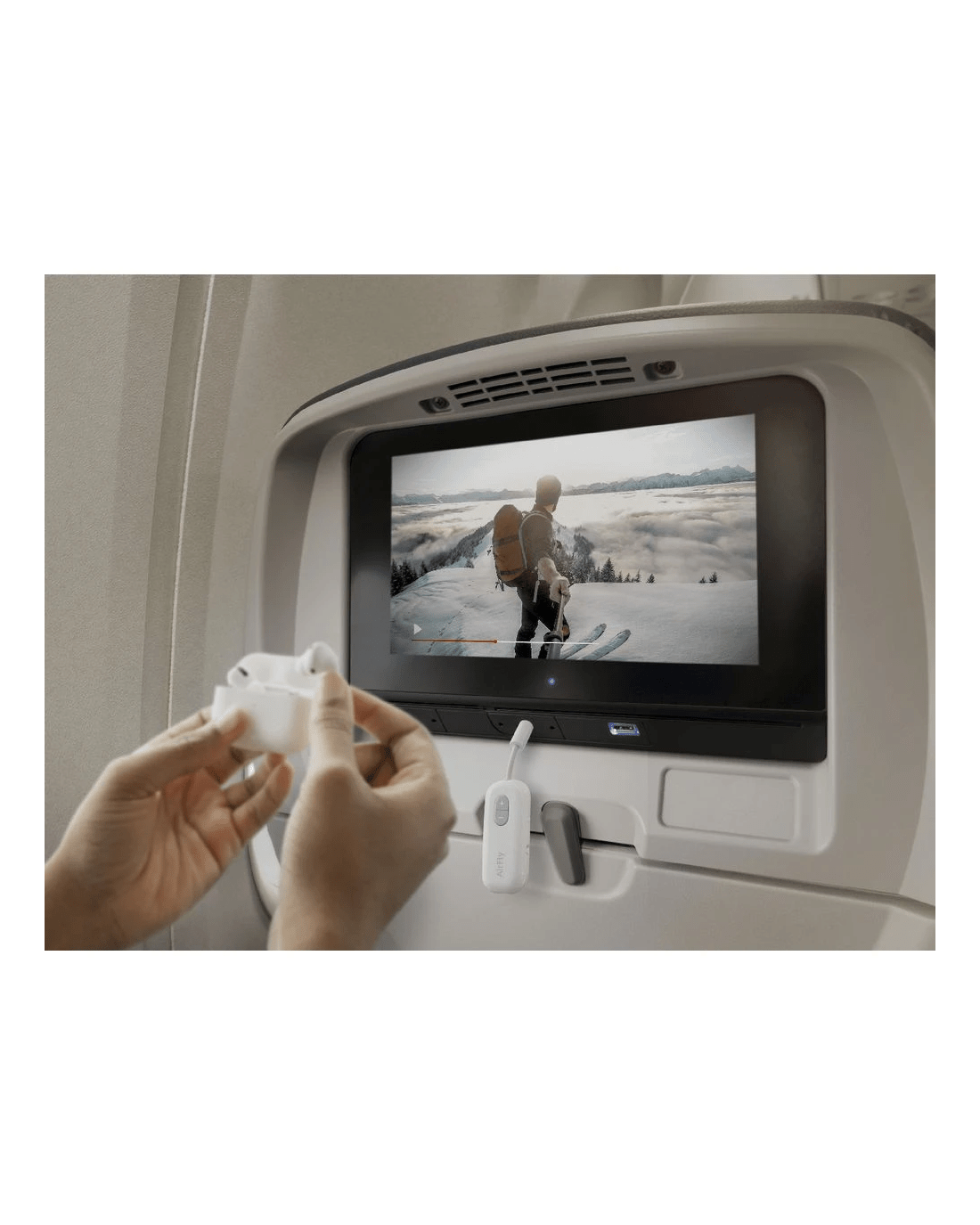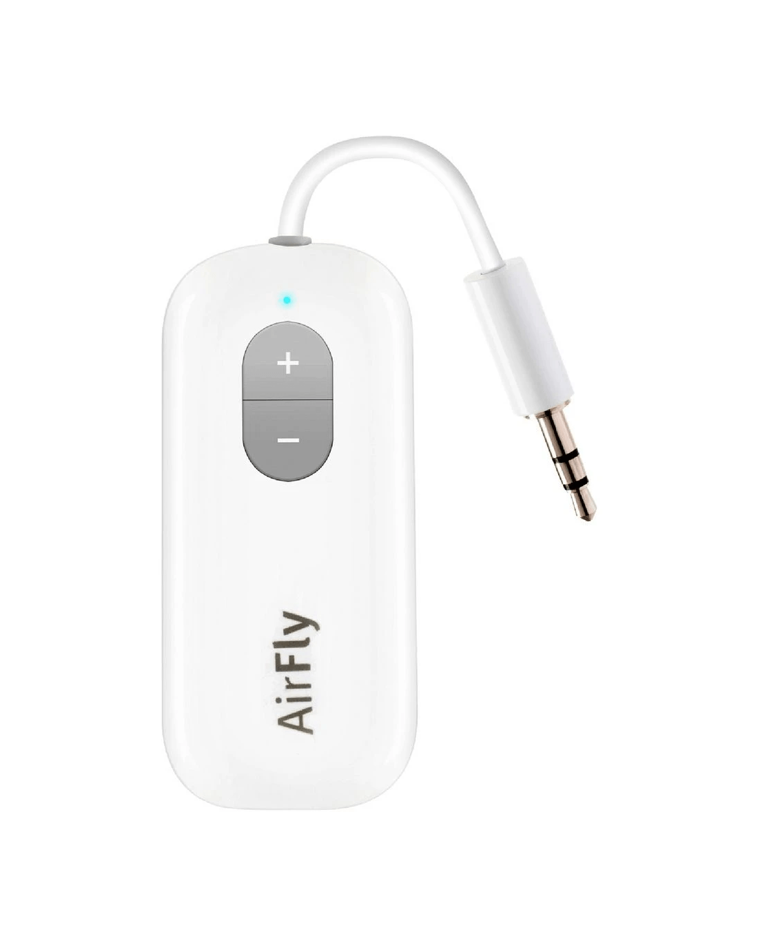 The Twelve South AirFly is a wireless adapter that lets you use your wireless headphones or earbuds in places that only have a headphone jack, like airplanes and treadmills. Plug this tiny transmitter into the headphone jack to listen to in-flight movies or TVs at the gym. With up to 20+ hours of battery, AirFly will outlast the longest commercial flights, while its new volume controls let you turn sound up or down without touching the seat back screen.