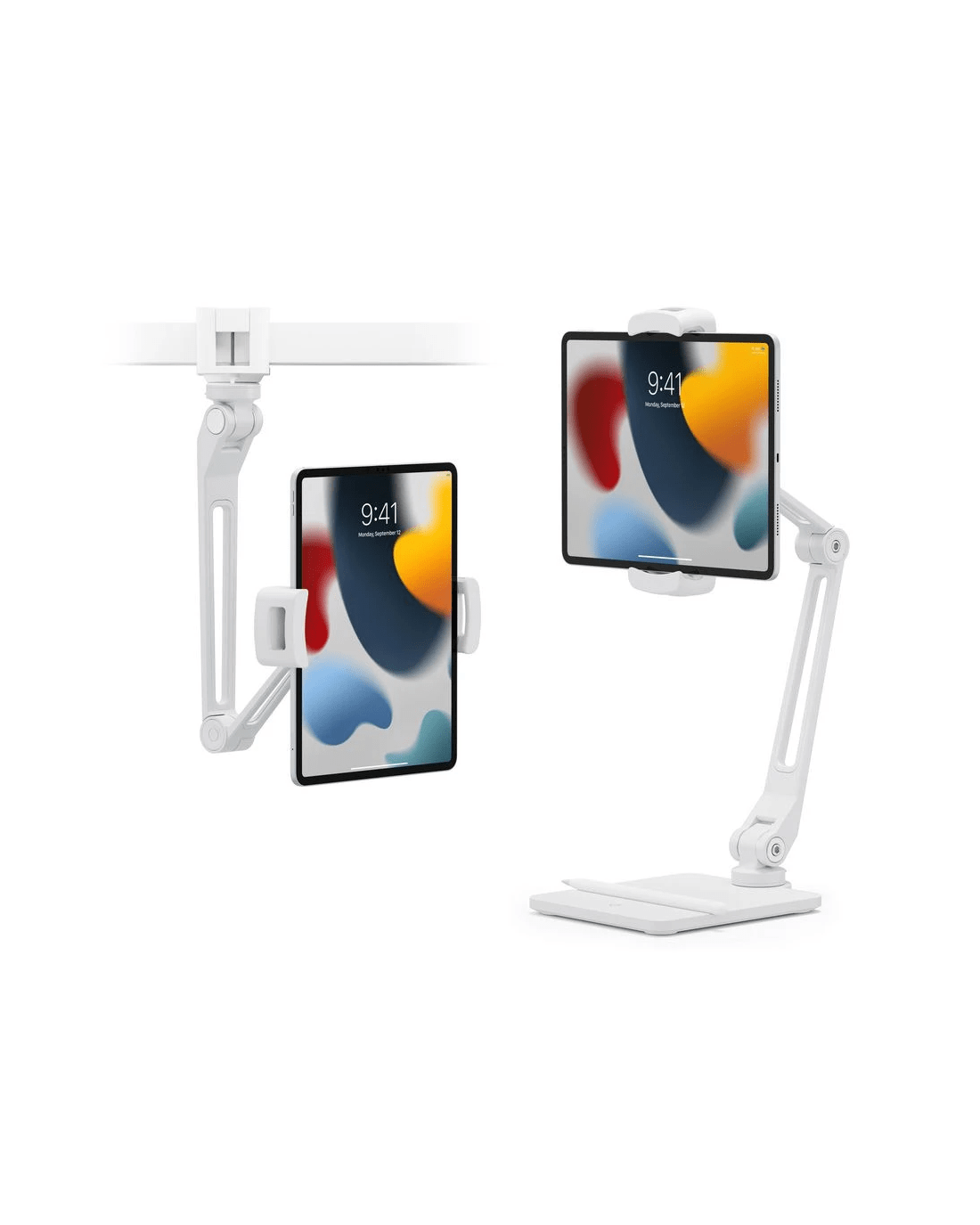 The TwelveSouth iPad/Tablet HoverBar Duo Clamp and Base is a creative companion dedicated to rising your productivity to gargantuan summits. This handy tool is supported by the QuickSwitch Tab, which allows you to switch from a desktop base to an adjustable shelf clamp in seconds, meaning you can customise your iPad mounting to match the spaces you move through. It's great for a variety of activities, including working on your tablet, cross-checking a recipe in the kitchen, presenting your best angles on a video call, and more.