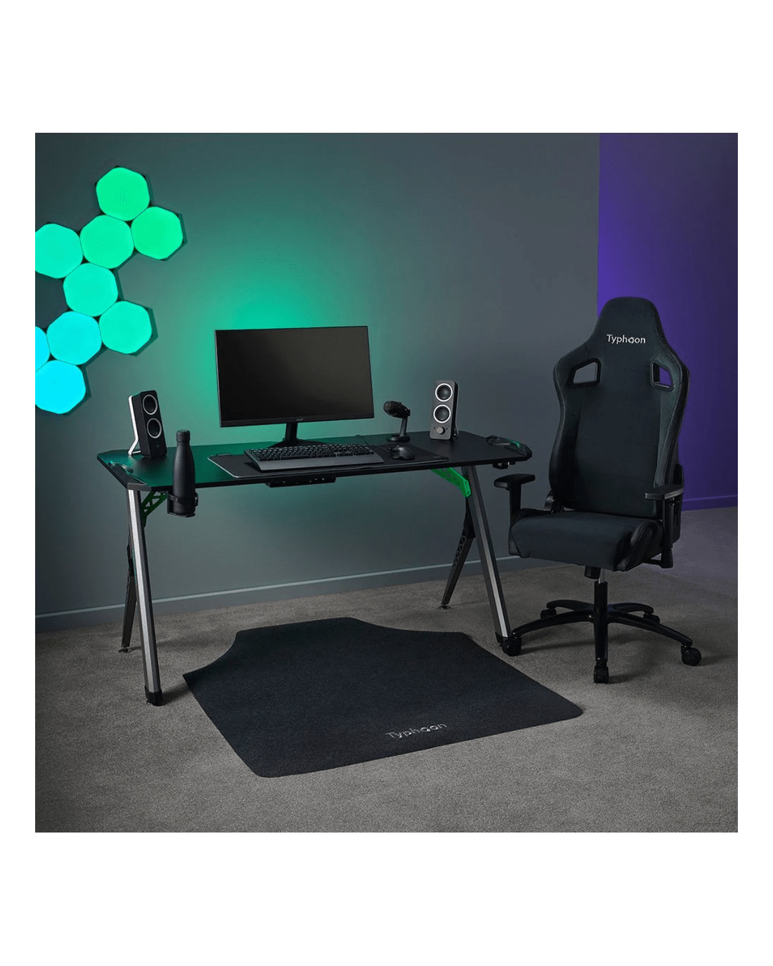 Sit at your desk comfortably while keeping your floor protected using this Typhoon Gaming Mat. The mat is constructed from a smooth combination of polyester and PVC, designed for carpets that are 6 mm thick. The mat's felt surface is anti-slip, ensuring that your chair stays in place.