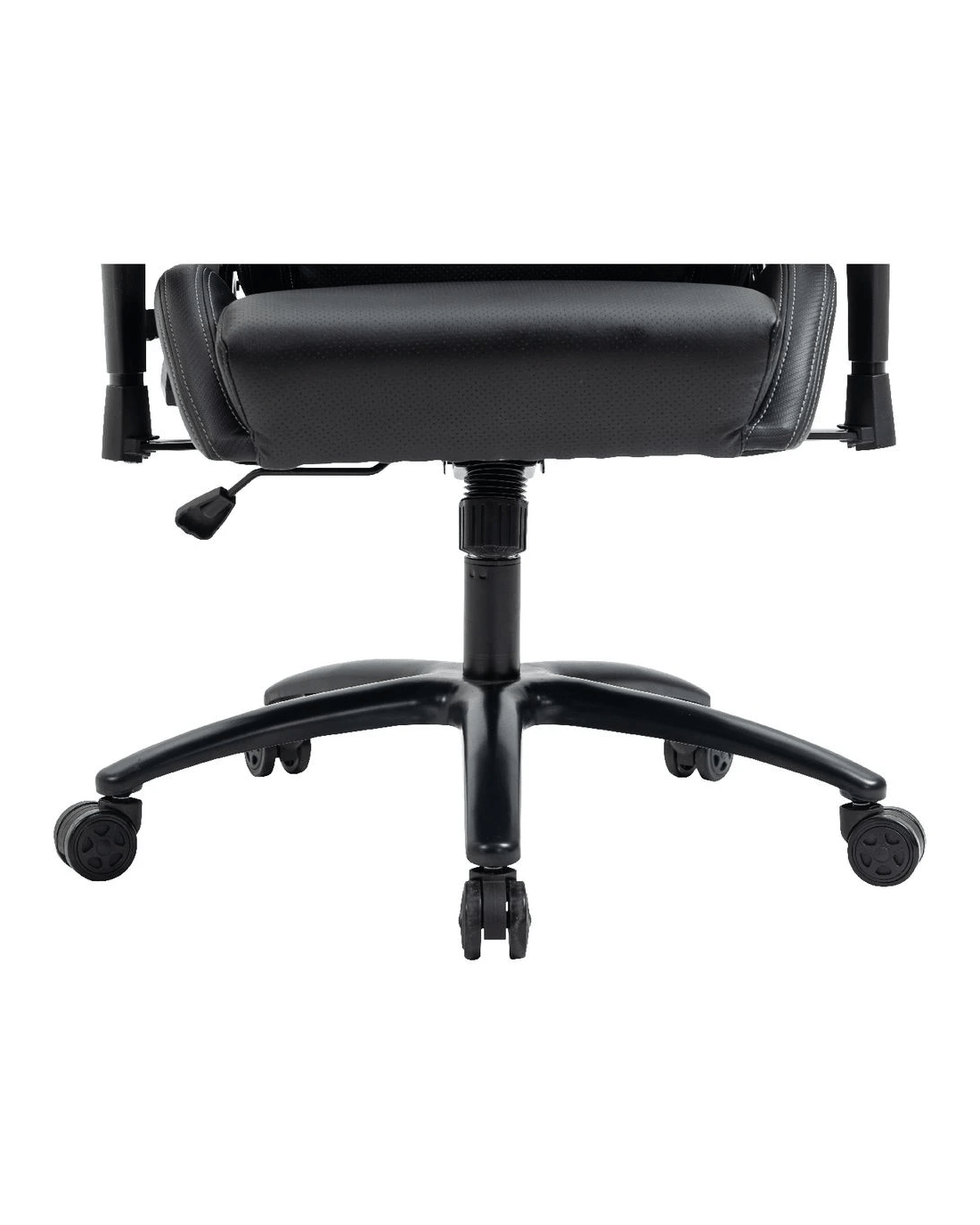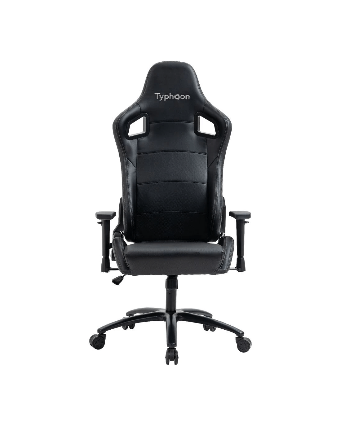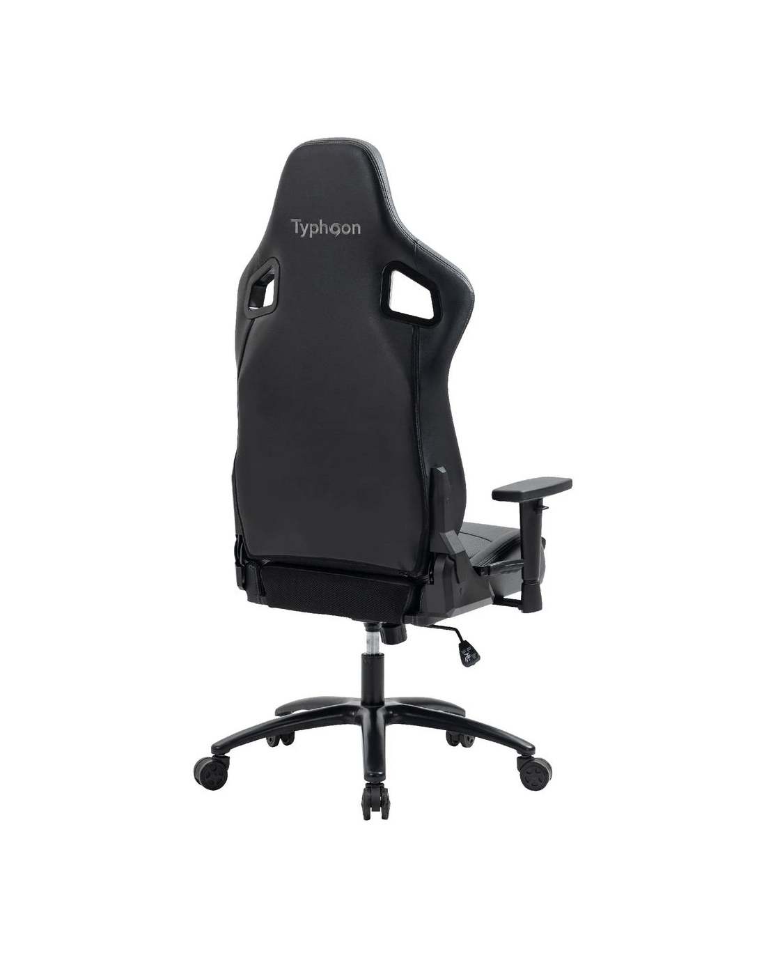This Typhoon Viper High-Back Racing Gaming Chair is designed for gamers to sit in style and comfort. It features gas lift height adjustments as well 135 degree of back reclining and a coil spring seat so you can find the position that gives you the most support. It has a stylish, PU-faced upholstery, steel frame and five-star base that make up a stable structure and ergonomic design.
