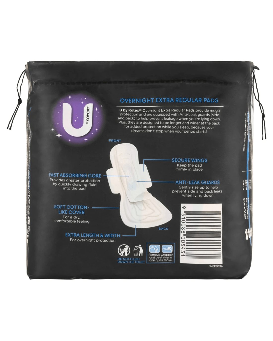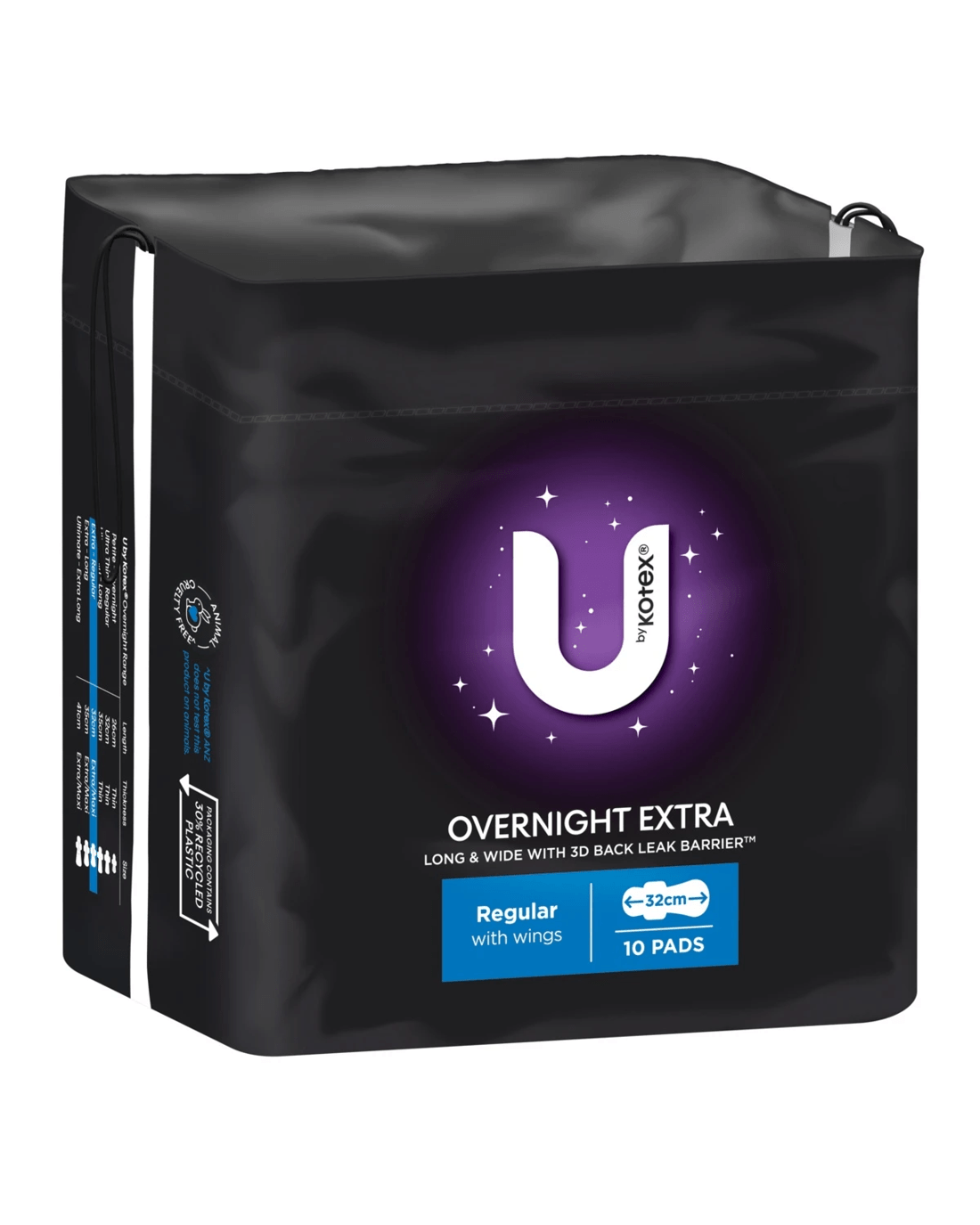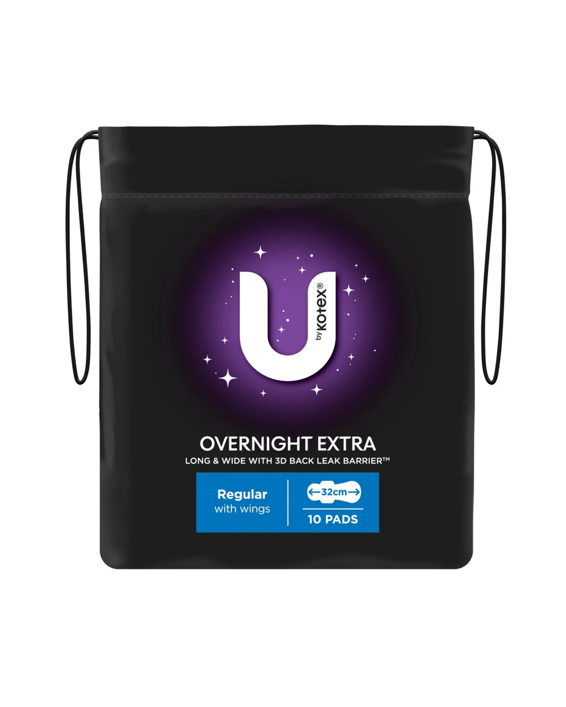U by Kotex 10 Pack Extra Overnight Pads with Wings