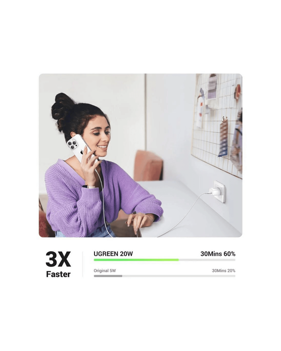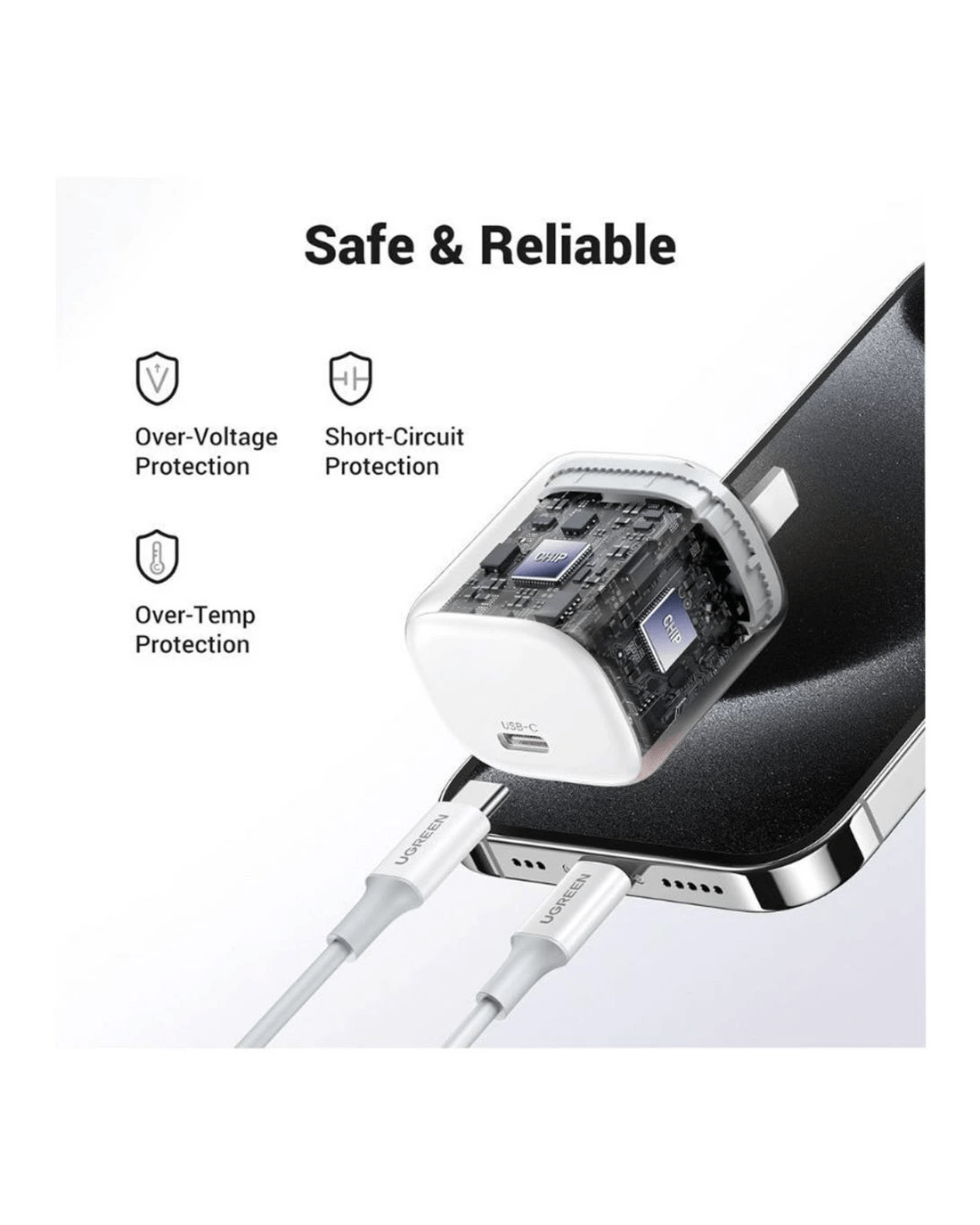 This UGREEN Desk Charger is a compact and efficient charging solution designed to meet all your fast charging needs. It supports up to 20W power delivery, allowing you to charge your iPhone 15 Pro from 0% to 60% in just 30 minutes. Plus, it automatically matches the device’s current and has protections against over-current, over-voltage, and short-circuiting, ensuring safer overnight charging.