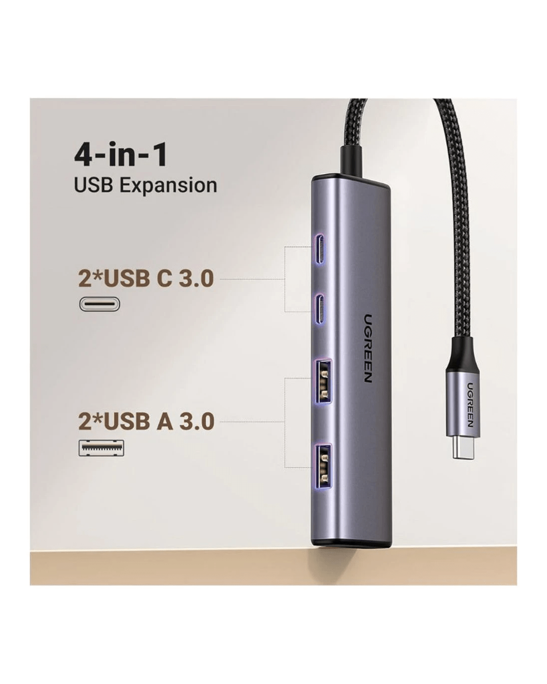 UGREEN 4-in-1 USB Hub Black