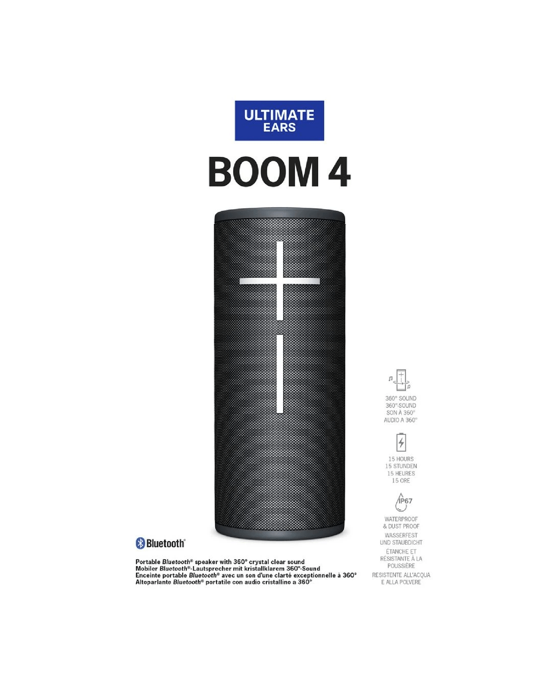 This Ultimate Ears Boom 4 is a super-portable wireless speaker built to join you on your adventures. It's seriously waterproof and features balanced 360° sound, deep bass, and one- touch music controls. Enjoy four preset EQ modes or customise your own, and pair it with other Ultimate Ears speakers for even more fun.