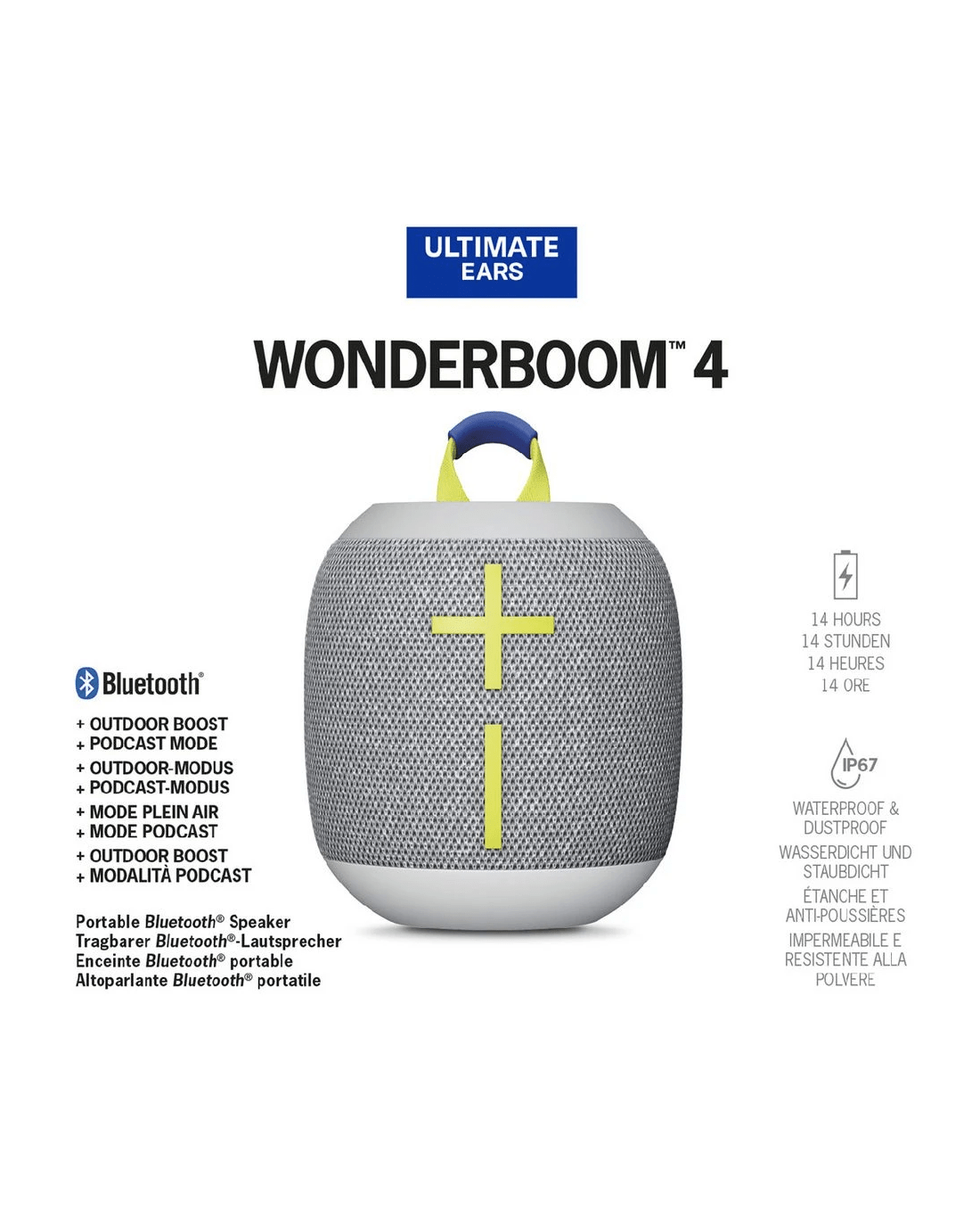 This Ultimate Ears Wonderboom 4 is an ultra-portable wireless speaker built to join you on your adventures. It's seriously waterproof and features surprisingly large 360° sound, deep bass, and a 14 hours of battery life. The IP67 rating means it's waterproof, dustproof and it even floats, so you can take it to the pool, the beach or even into the shower. Pair it with other Ultimate Ears speakers for even more fun.