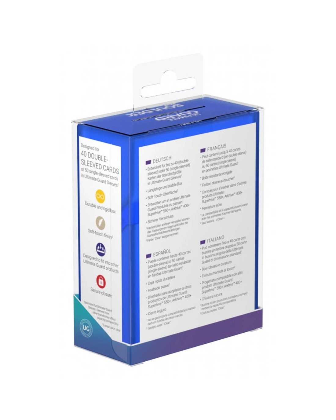 - Designed for 40 double-sleeved or 50 single-sleeved standard sized cards in Ultimate Guard Sleeves1
