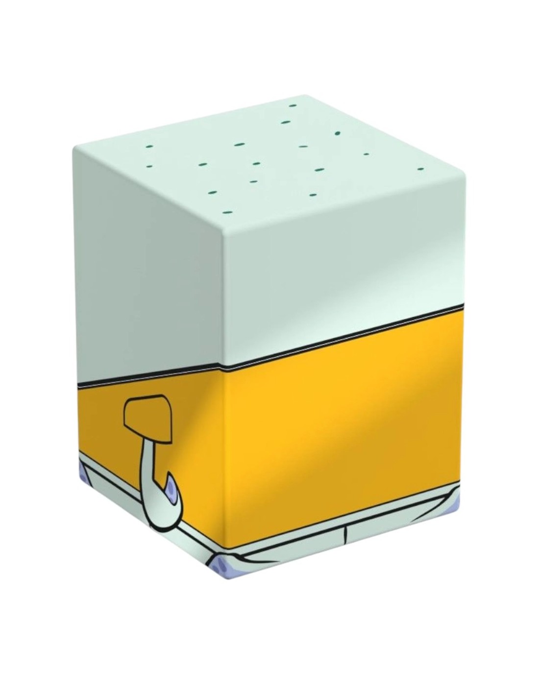 Collectible box for storing TCG decks, tabletop gaming accessories, and/or collectibles. The Squidward Squaroe from the Spongebob Squarepants edition holds up to 100 cards in double protective sleeves if used as a deck box. Squaroes are made from 78% renewable resources and fit perfectly into the separately available Collectors Case.