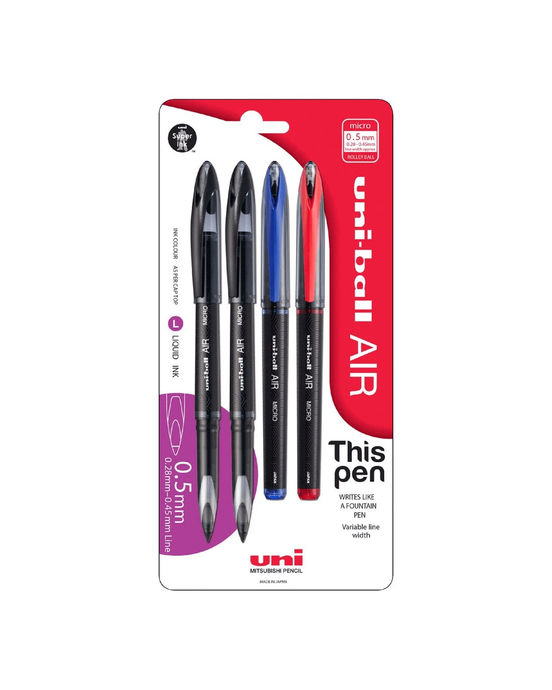 Sold by OfficeworksUni-Ball Air Micro Rollerball Pen Assorted 4 Pack
