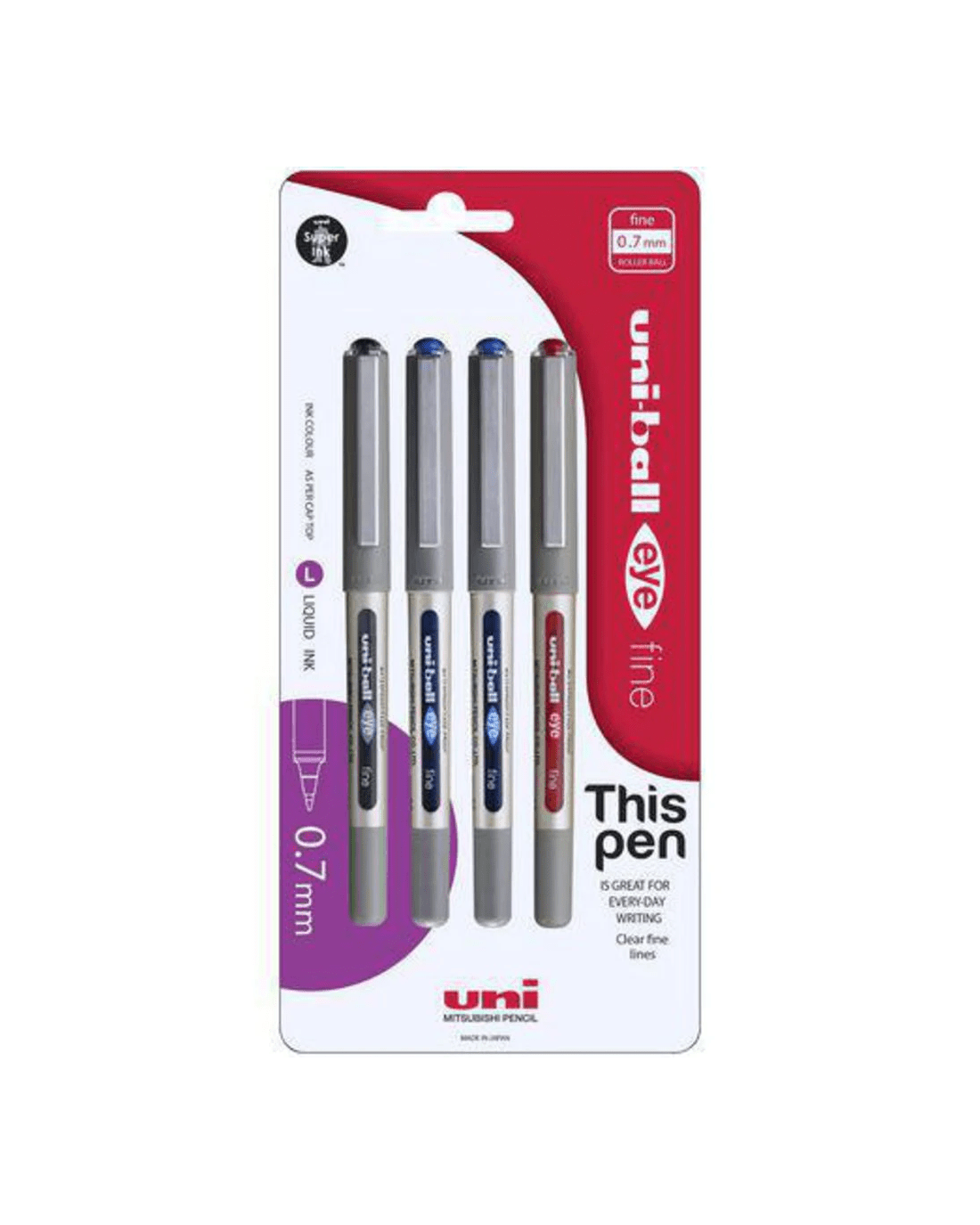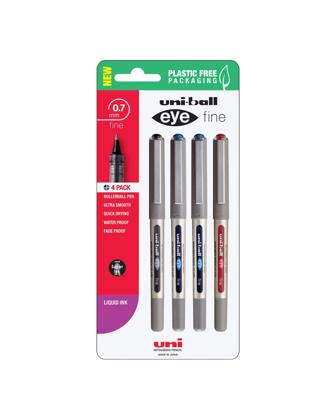 Sold by OfficeworksUni-Ball Eye Fine Rollerball Pens Assorted 4 Pack