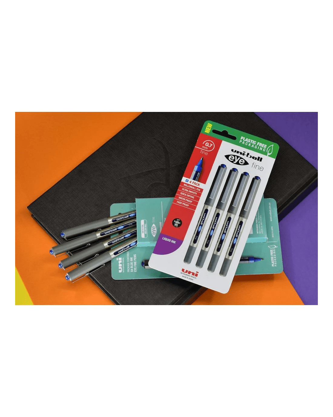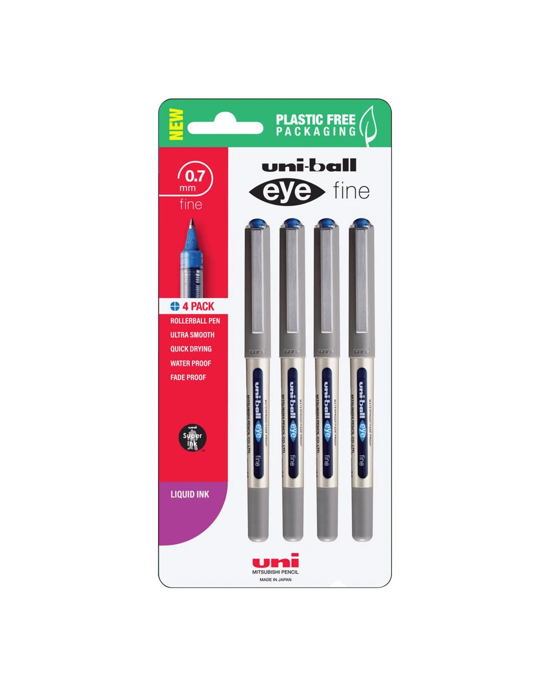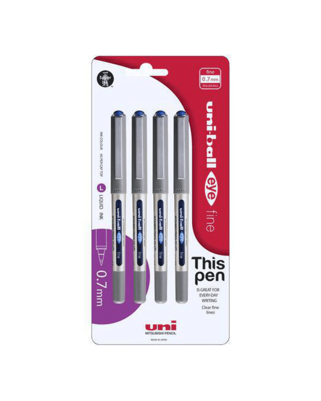 Sold by OfficeworksUni-Ball Eye Fine Rollerball Pens Blue 4 Pack